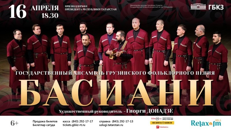April 16, at the State Grand Concert Hall after S. Saidashev with a solo concert will perform the State Ensemble of Georgian Folk Singing "Basiani". The beginning is at 18.30.