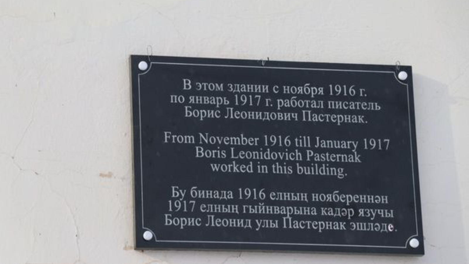 Памятная табличка Б. Пастернаку установлена на фасаде краеведческого музея, так как именно в этом здании с ноября 1916 по январь 1917 года работал писатель.