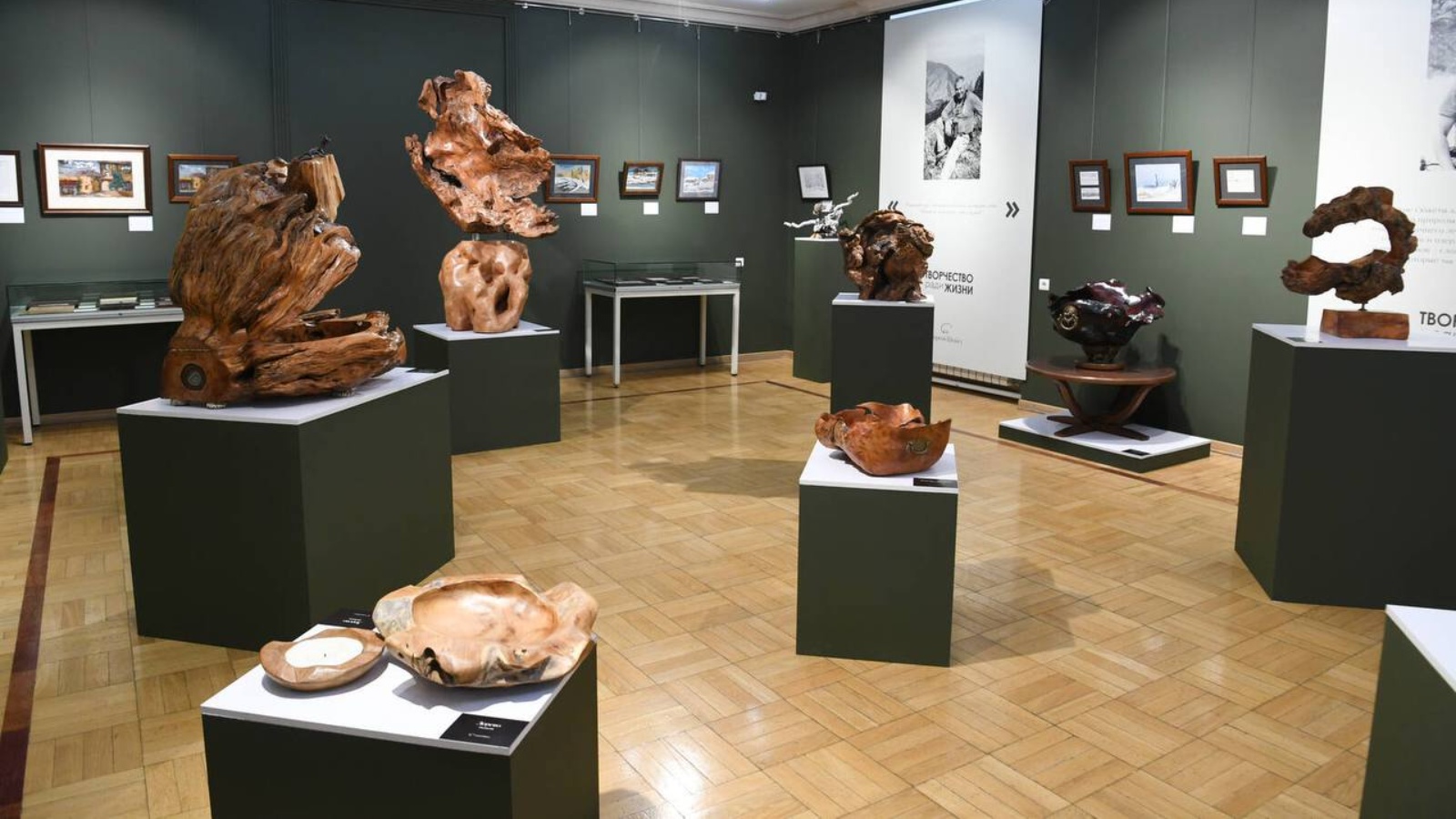 Посетители могут увидеть 100 работ - 83 картины и 17 декоративных изделий из дерева. Часть экспонатов будет продана на аукционе, а вырученные средства пойдут на помощь тяжелобольным детям. Экспозиция называется «Творчество ради жизни». Она представлена в Национальной художественной галерее «Хазине».