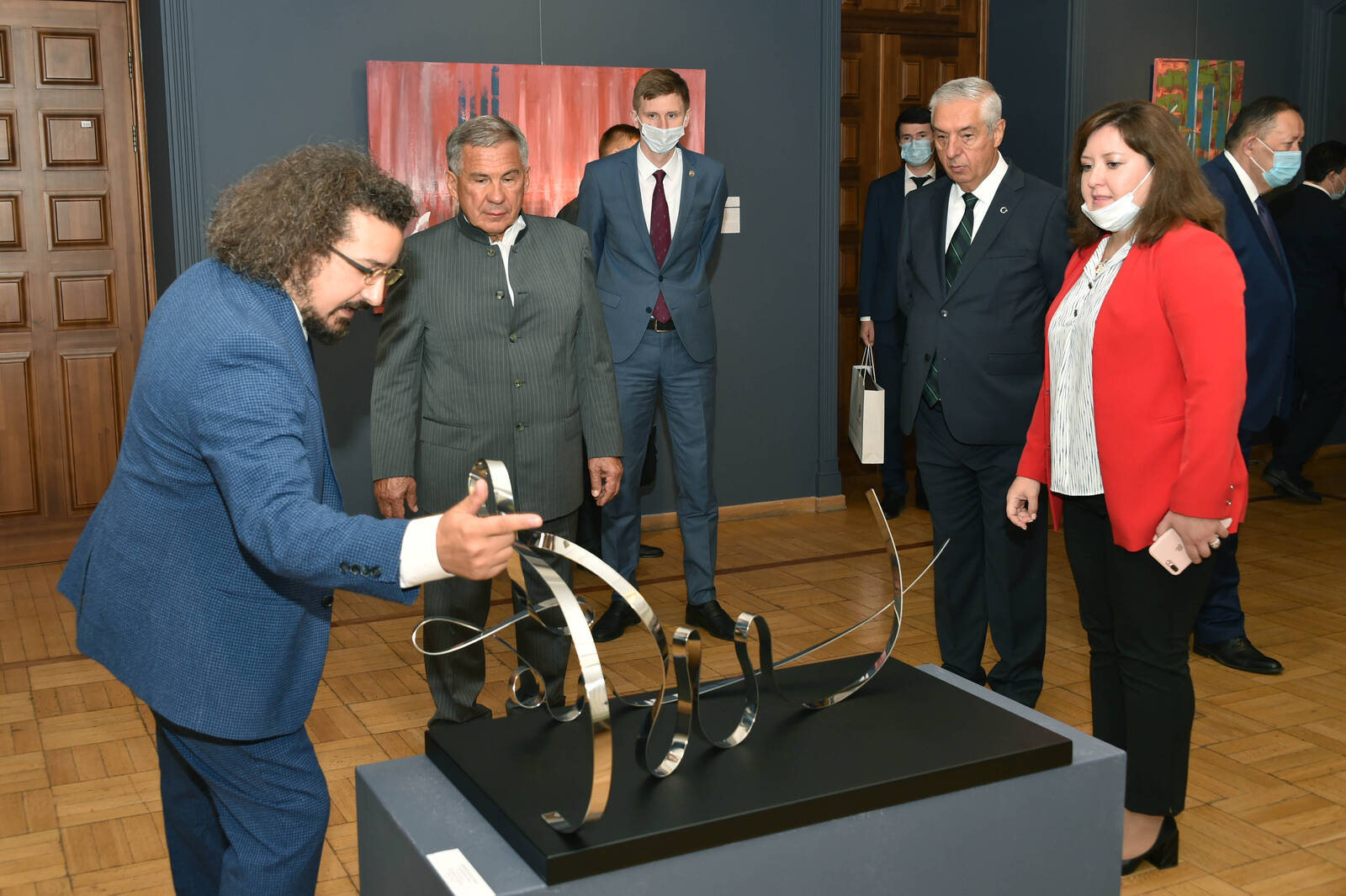 Президент Татарстана Рустам Минниханов посетил выставку «Шамаиль арт» в Национальной художественной галерее «Хазинэ».