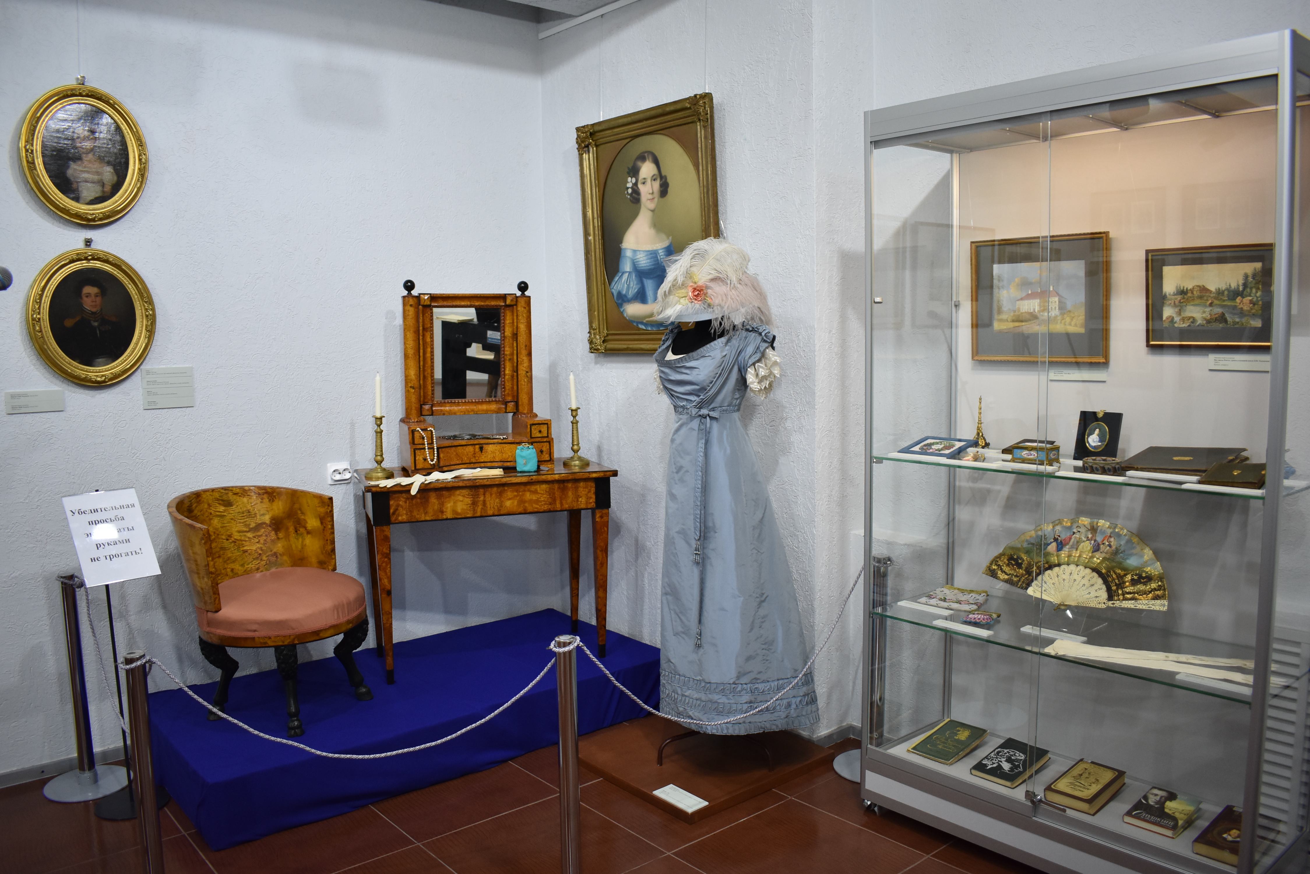 Представленные в зале портреты, костюмы, оружие, книги и предметы декоративно-прикладного искусства создают исторический, нравственный и культурно-бытовой контекст, в котором жили, принимали решения и действовали герои Александра Сергеевича.