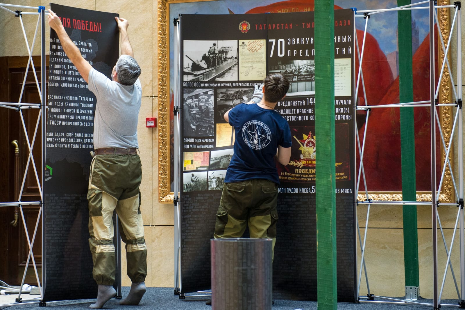 Основу выставки составили документы и фотографии из фондов Национального музея и Государственного архива республики. Много новых материалов было выявлено в ведомственных музеях оборонных предприятий. Там сохранились образцы продукции, фотоальбомы, листки соцсоревнования, грамоты и документы, заводские газеты – всё это свидетельство трудовых подвигов. Еще показаны документы и фотографии, отражающие вклад сельских жителей, медицинских работников, представителей творческих организаций, широких слоев населения.
