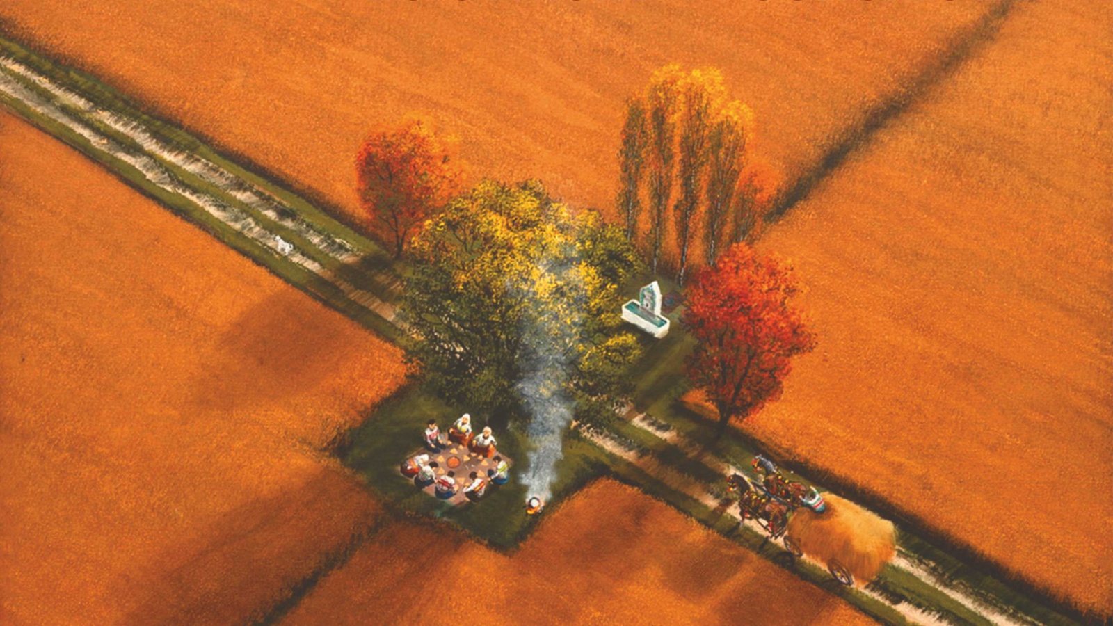 “Был еще один ключевой момент, повлиявший на мое мировосприятие. В 1974 году, когда мы с женой возвращались домой от друзей, нас на полной скорости сбил автомобиль. Все наши тела были в переломах. Мы долго лежали в гипсе в больнице и дома. До этого момента я больше увлекался абстрактной живописью, пессимистичными цветами. И в этот период меня озарило понимание того, что жизнь прекрасна, она стоит того, чтобы жить. Я словно птица взглянул на все это сверху и охватил взором всю картину деревенской жизни. Это сильно напоминало миниатюры, но было нечто другое. Начиная с 1975 года длительное время я работал в рамках этой новой формы.