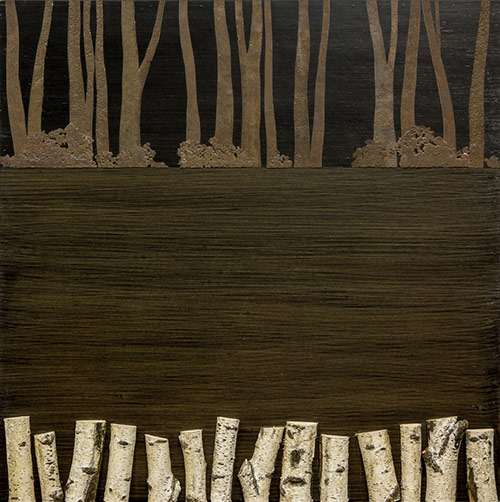 Ринат Ахметов работает в экспериментальной технике – сочетает дерево, железо, медь, алюминий, эмаль, латунь и масло.