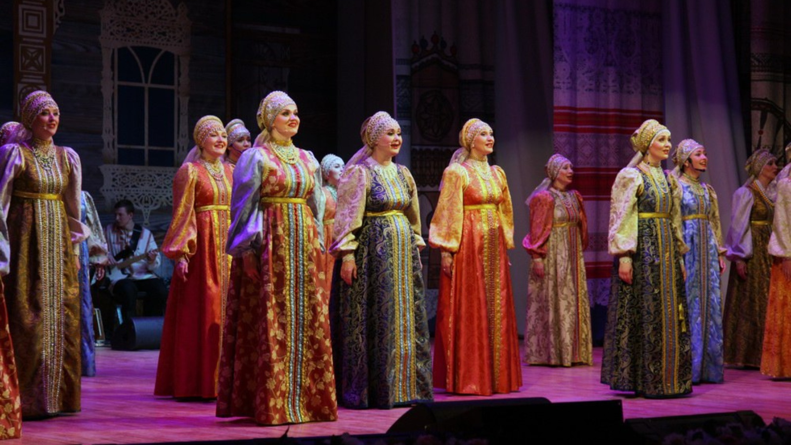 В программе: сочетание русского фольклора с элементами современных ритмов, с яркими сценическими зарисовками, музыкальными и хореографическими композициями, красочными декорациями и костюмами.