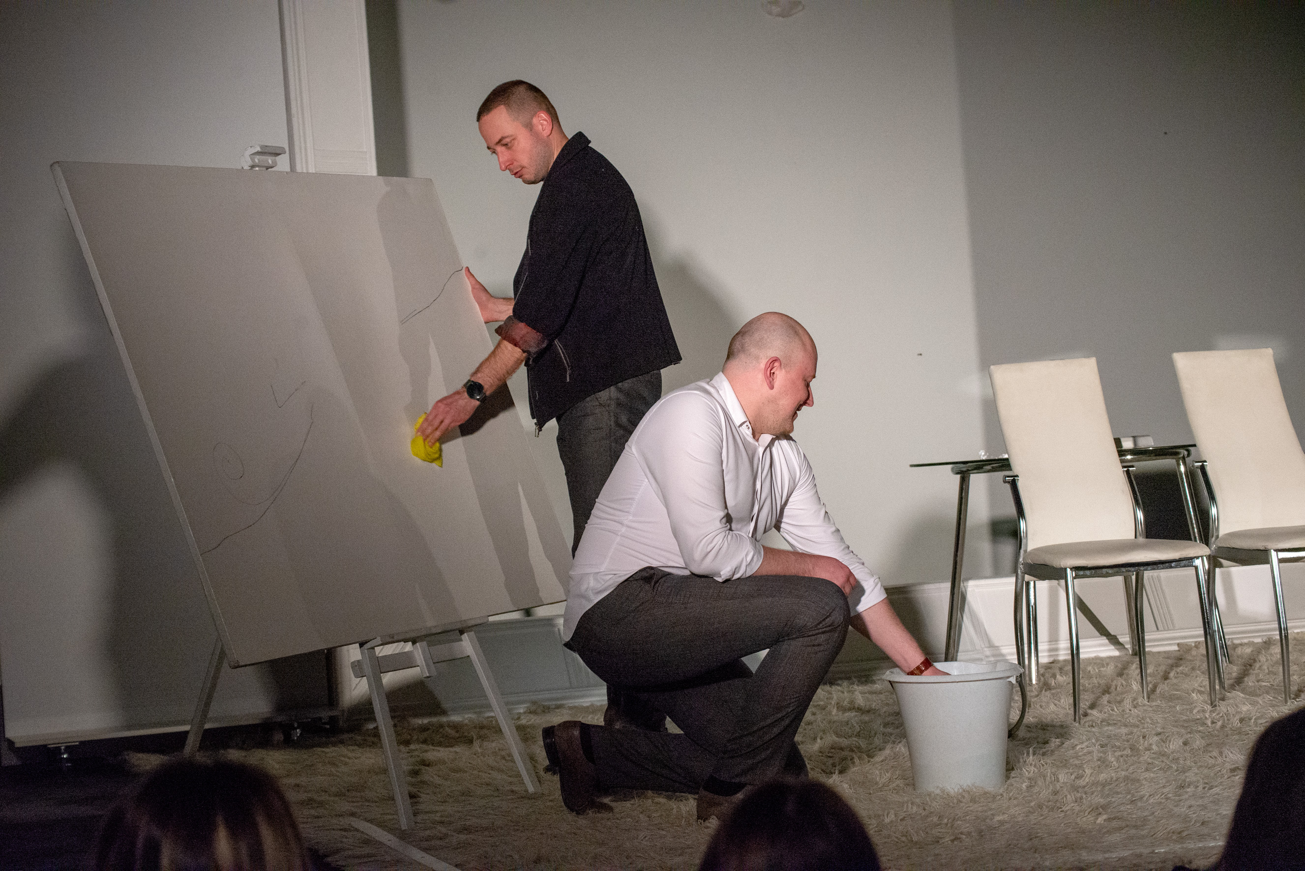 В спектакле играют выпускники КТУ Роман Зайдуллин и Булат Шамсутдинов.