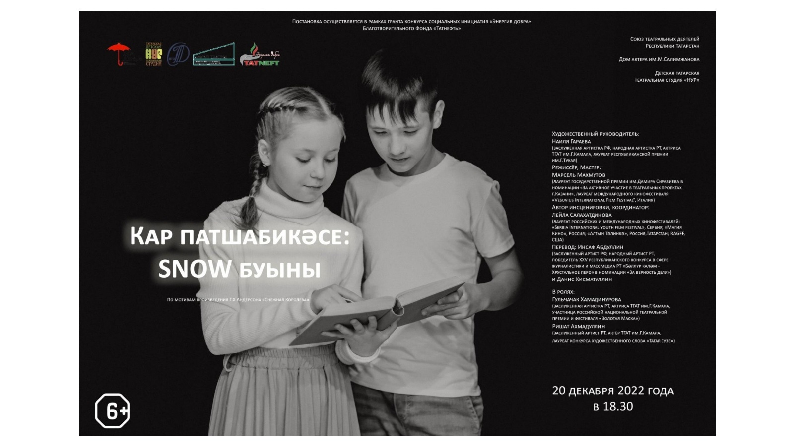 20 декабря в 18.30 на сцене Дома Актера им.М.Салимжанова (Союз театральных деятелей РТ) состоится показ спектакля «Снежная Королева: Поколение SNOW» детской татарской театральной студии «Нур».