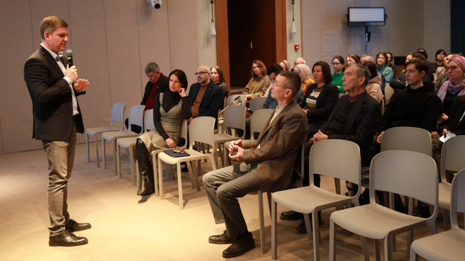 В интерактивном формате ведения с полным залом слушателей, спикер разъяснил порядок подачи заявки на поддержку от фонда, привел примеры удачных проектов и ответил на вопросы.