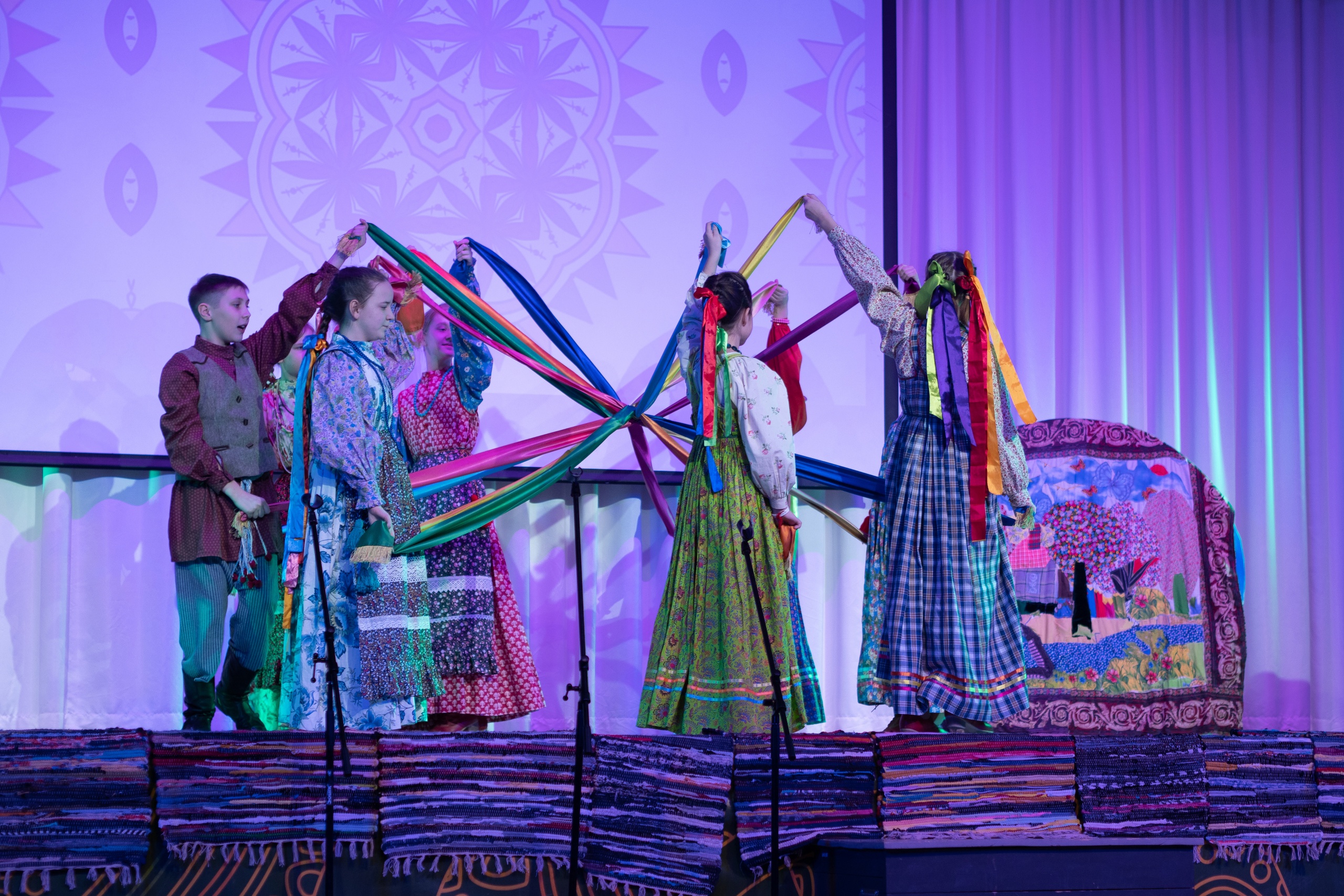 Вся смена была наполнена творчеством, выступлениями, ребята активно участвовали в вечере народных игр, традиционной танцевальной «вечерке» и других мероприятиях. Завершилась смена Гала-концертом, где коллективы-участники исполнили свои самые яркие номера и представили результаты работы с экспертами за всю неделю: ансамбль гитаристов на сей раз сыграл калюках – народных духовых инструментах, участники хореографических коллективов станцевали кадриль «шестёру», старшие мальчики показали номер с элементами традиционных молодецких забав, девочки из вокальных ансамблей пели, водили хороводы.