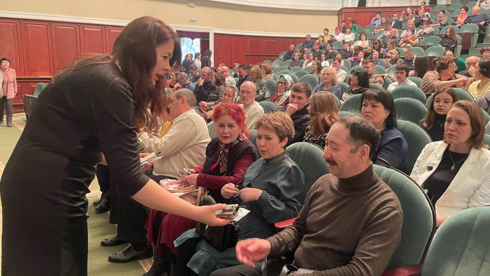 Фарида Исмагилова, директор Альметьевского театра: «Тифлокомментатор работает на двух государственных языках. Но у зрителей пока спрос был на комментирование с татарской речью. На каждый спектакль приглашаются по 15 человек плюс сопровождающие. Специально для них бронируются удобные места в зрительном зале. Посещение в рамках программы – бесплатное».