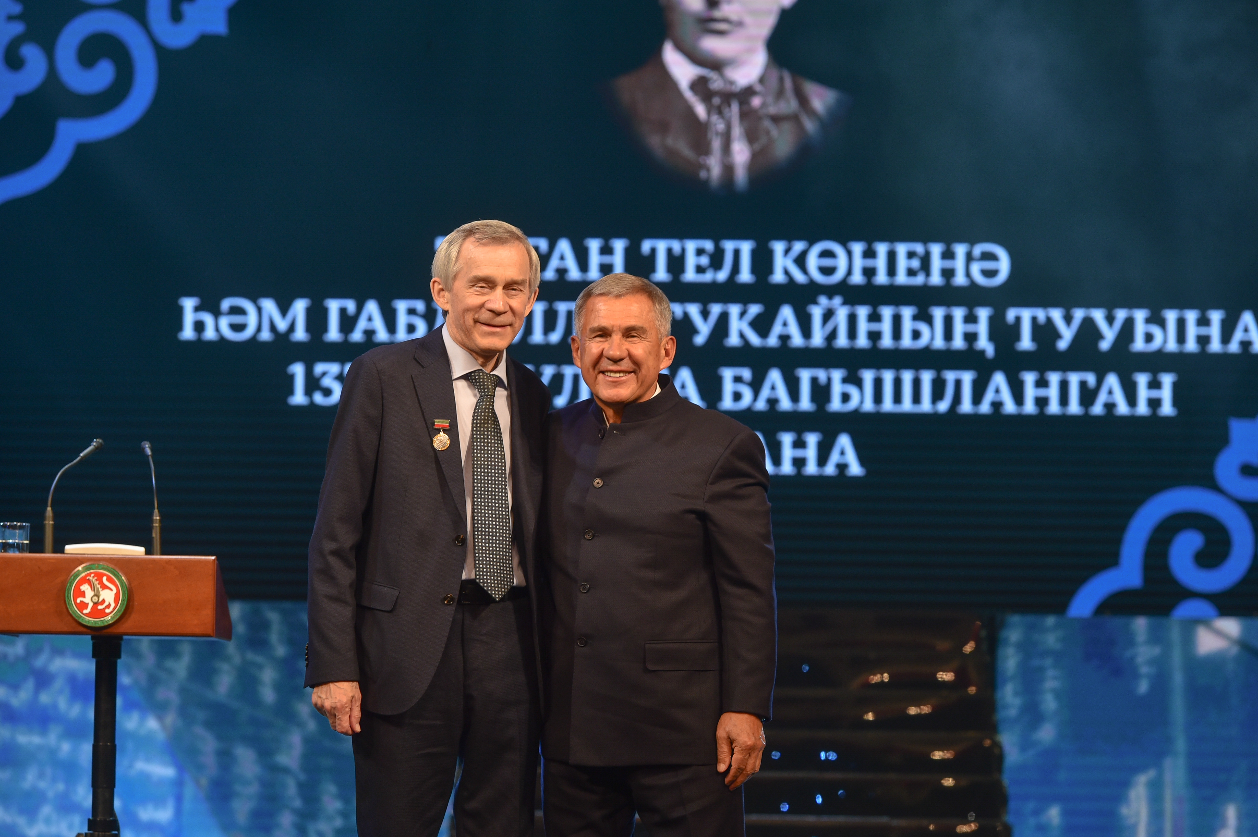 Рустам Минниханов поздравил участников церемонии с Днём родного языка и 137-летием со дня рождения великого татарского поэта Габдуллы Тукая. «Гений нашего поэта - в созданных им прекрасных образах. В его творчестве выражены душевная лирика, острые социальные темы, сатира и юмор. В своих произведениях Габдулла Тукай воспевает силу и благородство нашего народа», - сказал Раис РТ.