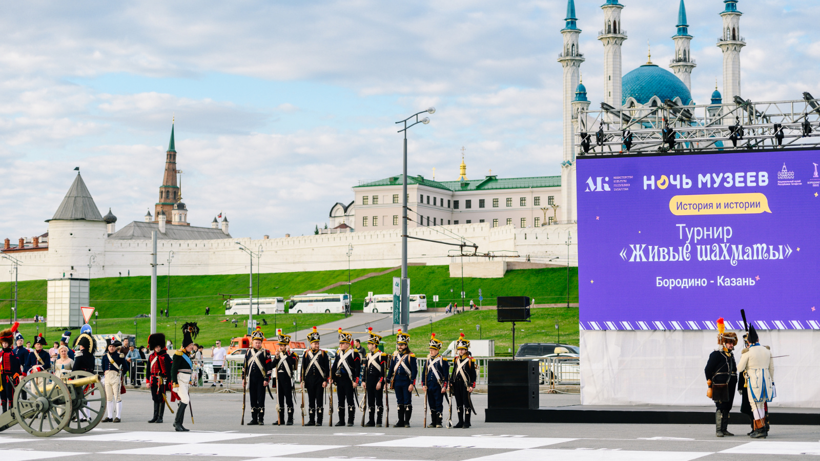 20 мая 2023 года на площади Тысячелетия казанцы и гости столицы Татарстана смогли увидеть уникальное шоу – турнир «Живые шахматы» в рамках Всероссийской акции «Ночь музеев». Была разыграна шахматная партия с живыми фигурами – реконструкторами Музея-заповедника «Бородинское поле» и партнёрами Национального музея Республики Татарстан, пушками и лошадьми.