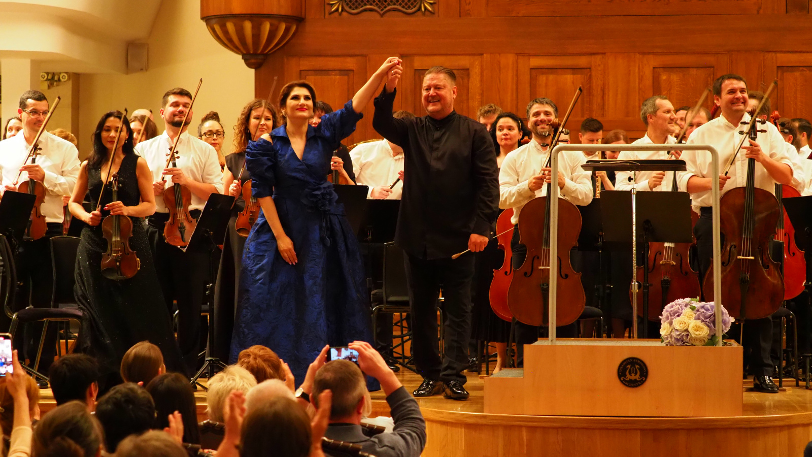 Вчера в ГБКЗ им. С.Сайдашева Государственный академический симфонический оркестр Республики Татарстан и его художественный руководитель и главный дирижёр Александр Сладковский провели оперный гала-концерт совместно с солистами Большого театра России Динарой Алиевой (сопрано) и Бехзодом Давроновым (тенор).
