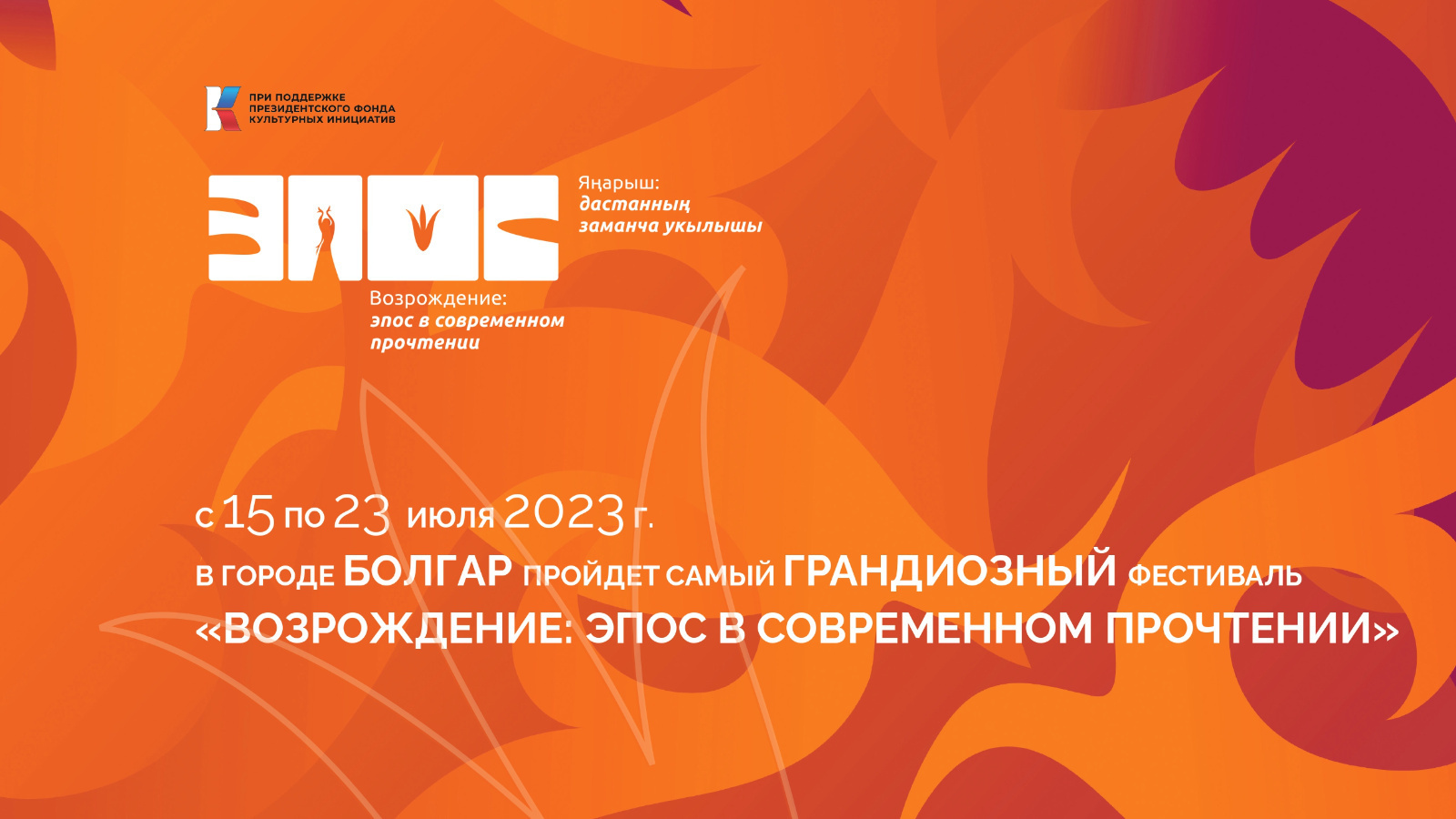 С 15 по 23 июля 2023 г. в городе Болгар пройдет большой недельный фестиваль «Возрождение: Эпос в современном прочтении». Спектакли по мотивам эпосов народов мира, показы мод этно-дизайнеров, большая концертная программа и шоу-концерт от исполнителей фолк-фьюжн направления, творческие лаборатории и возможность окунуться в средневековую атмосферу ярмарки ждет всех гостей фестиваля.