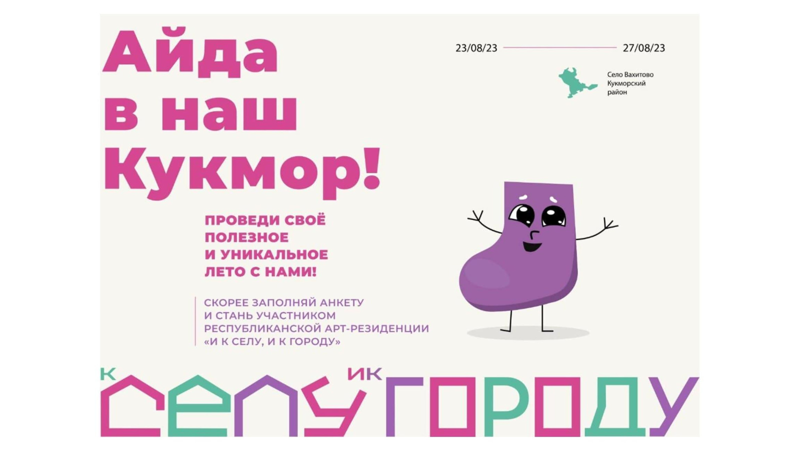С 23 по 27 августа в селе Вахитово Кукморского района вновь состоится грандиозное культурное событие! Свои двери откроет республиканская молодёжная образовательная арт-резиденция «И к селу, и к городу».