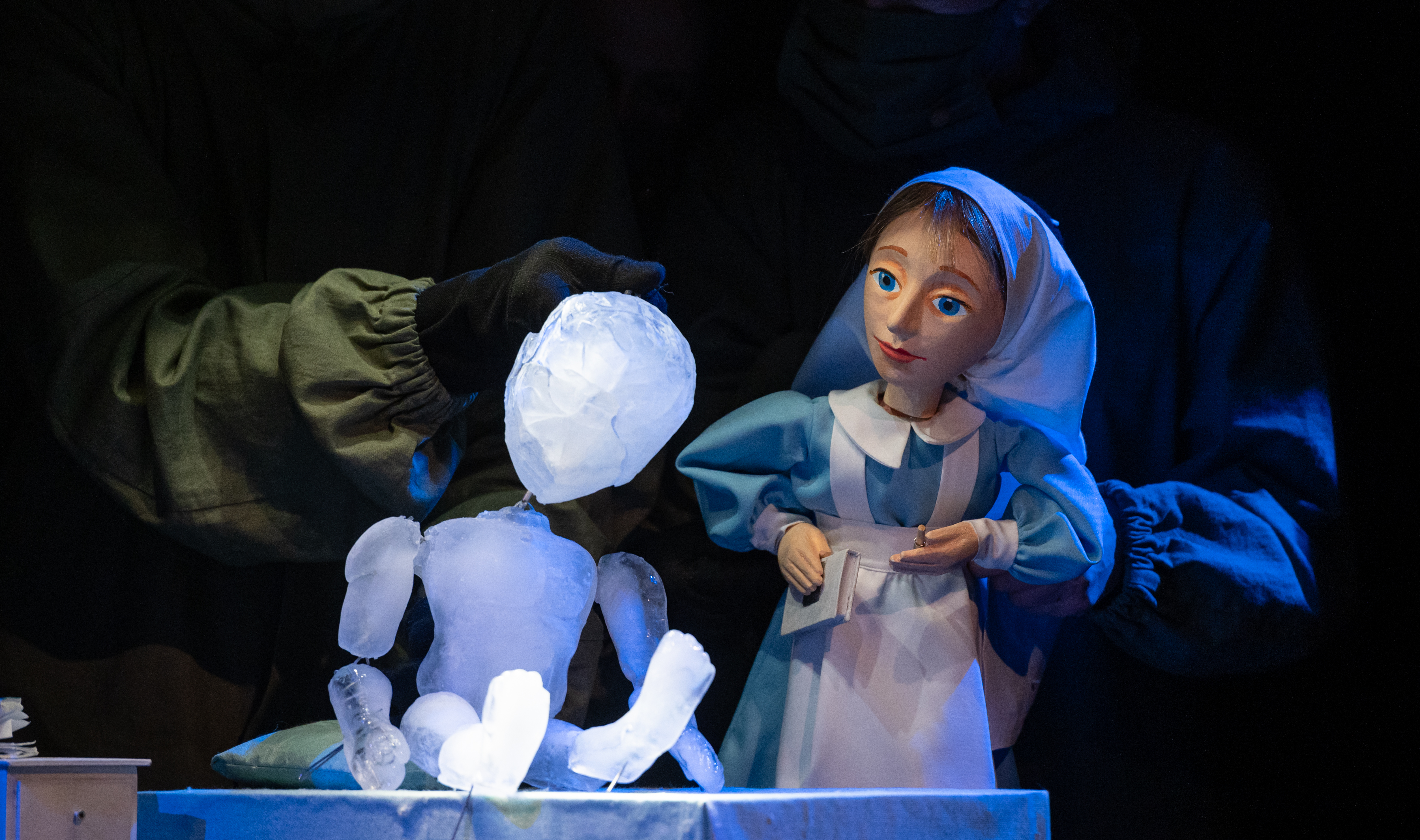 «Есть только одна причина, почему мы решили для этого спектакля сделать куклу изо льда: она соответствует основному смыслу произведения, помогает раскрыть внутреннее состояние главного героя и ситуации, которые с ним происходят», — делится режиссер-постановщик Ильгиз Зайниев.