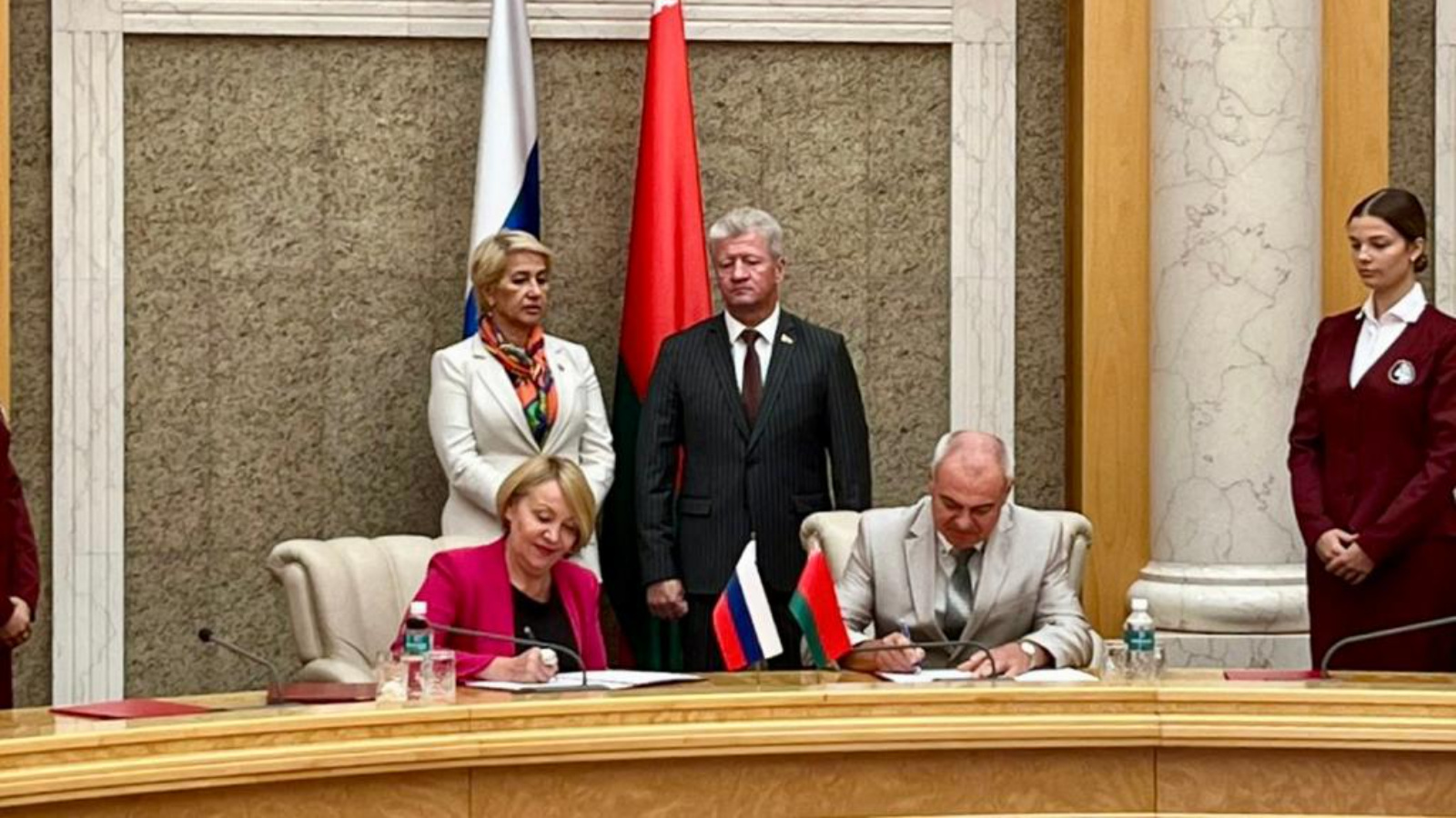 Генеральный директор Национального музея Республики Татарстан Алиса Вяткина подписала документы о сотрудничестве с директором Национального исторического музея Республики Беларусь Александром Храмым, директором Белорусского государственного музея истории Великой Отечественной войны Владимиром Воропаевым и директором Национального художественного музея Республики Беларусь Анной Кононовой.