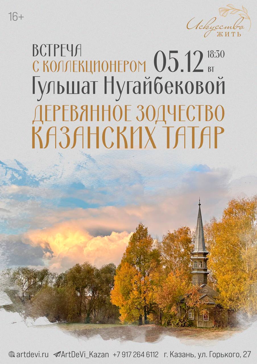 Культурно-просветительский центр «Искусство жить» продолжает серию встреч с коллекционером Гульшат Нугайбековой. Предстоящее мероприятие будет посвящено деревянному зодчеству казанских татар. Оно состоится 5 декабря в 18.30.