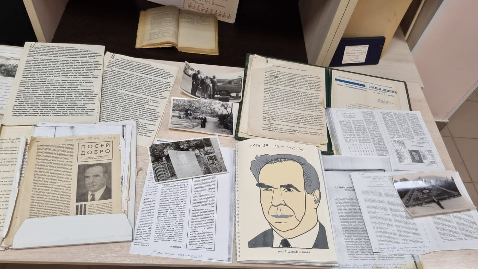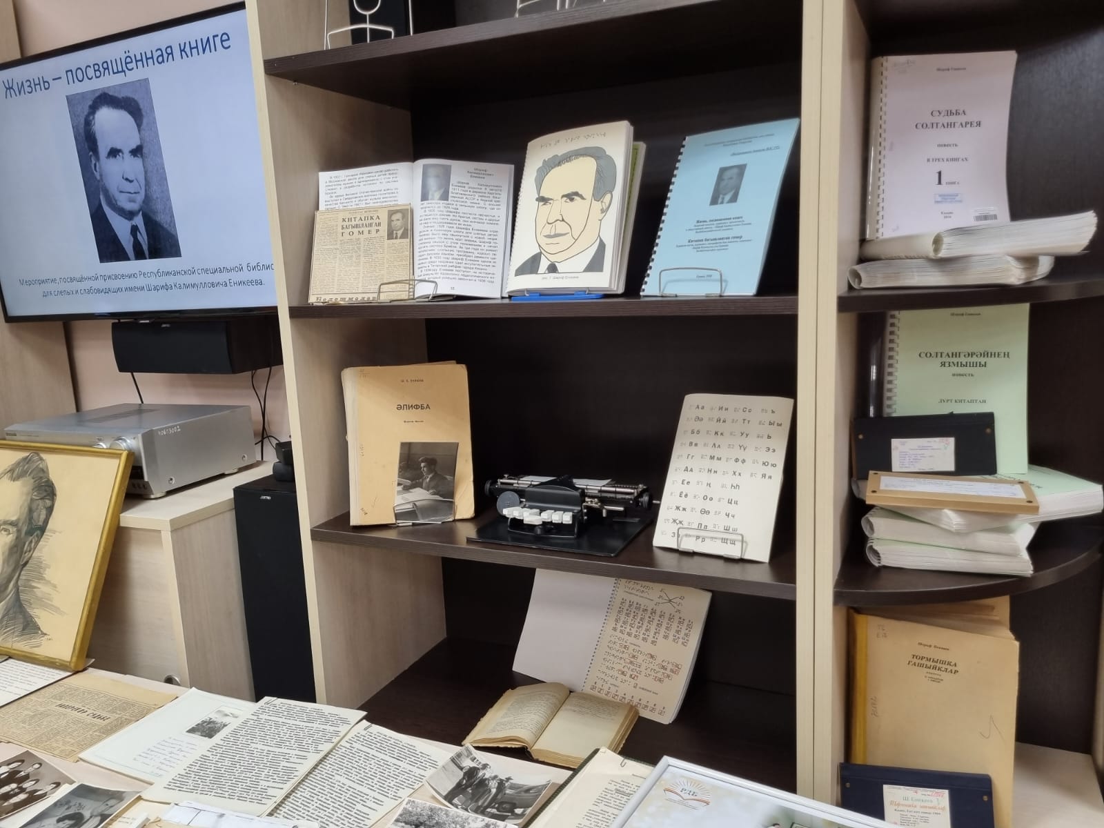 - После возобновления книгопечатания по системе Брайля, многие годы издательским отделом библиотеки выпускаются книги. Отделом организационно-методической и библиографической деятельности проводится исследовательская работа по изучению истории татарского шрифта и жизнедеятельности Ш.К. Еникеева и людей, внесших вклад в книгоиздание и просвещение незрячих. По крупицам мы собираем все, что связывает нас с Шарифом Калимулловичем и его наследием. На сегодняшний день собран богатый архив, материалы из которого вы сегодня видите на выставке в зале. На его основе выпущены тифлокраеведческие сборники и реализованы выставочные проекты к юбилейным датам. В дальнейшем они лягут в основу мемориальной экспозиции. Организуются конкурсы брайлевского чтения и письма по произведениям Ш. Еникеева, конференции, посвящённые популяризации Брайлевской системы и т.д. Всё это стало маленькими шагами большого пути к увековечению памяти незрячего писателя, общественного деятеля, просветителя Ш.К. Еникеева в присвоении его имени нашей библиотеке. Ведь для всех нас Шариф Еникеев является татарским Брайлем. Его имя стало для нас зримой основой для демонстрации верности библиотеки своей миссии и просветительским традициям, заложенным им и его современниками,- подчеркнула она.