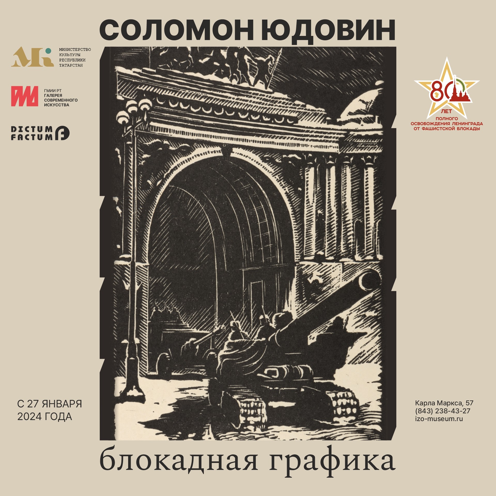Благотворительный фонд поддержки культуры и искусства DICTUM FACTUM представляет выставку «Соломон Юдовин. Блокадная графика» из собрания Евгения и Юлии Герасимовых. Экспозиция приурочена к 80-летней годовщине снятия блокады Ленинграда – одного из самых трагических событий Второй мировой войны, свидетелем и непосредственным участником которого стал художник.