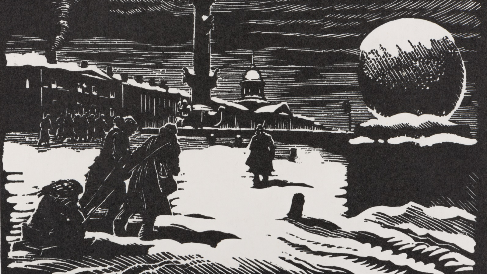 В 1923 году Юдовин переехал в Ленинград (тогда еще Петроград), куда его пригласили на должность ученого секретаря и хранителя в Музей петербургского еврейского историко-этнографического общества. В Ленинграде его и застала Великая Отечественная война, а спустя несколько месяцев вокруг города сомкнулось блокадное кольцо. Юдовин провел в осажденном городе один из самых тяжелых периодов блокады – с самого начала до середины 1942 года (когда он был эвакуирован в деревню Карабиха Ярославской области). Именно в это время появилась значительная часть листов его блокадной серии: рисунки, монотипии, гравюры, представляющие жизнь города-фронта в самых разных ее проявлениях. Серия включает в себя большое количество сюжетов, исполненных в оригинальных и печатных графических техниках. Художник работал над ней несколько лет, начиная с первых дней войны – вначале в Ленинграде, затем в эвакуации, и продолжал ее по возвращении, после снятия блокады города 27 января 1944 года.
