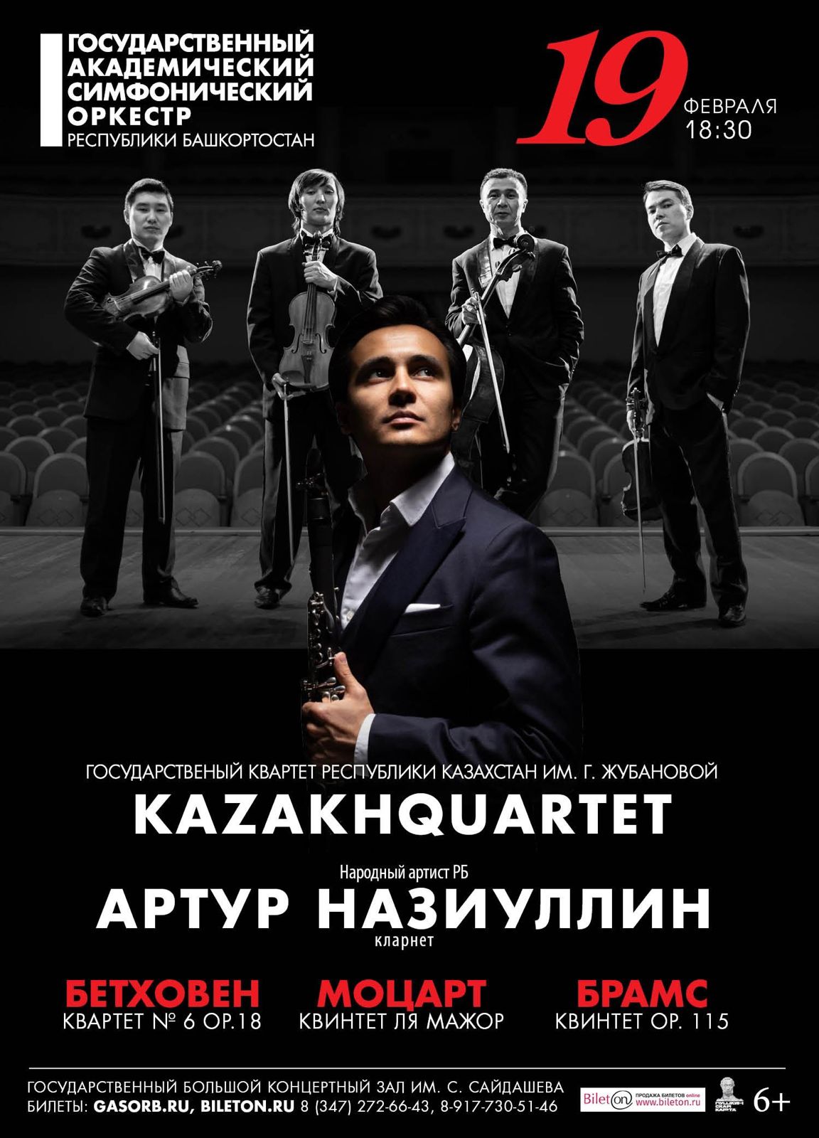 В исполнении блистательных музыкантов Государственного струнного квартета Республики Казахстан имени Газизы Жубановой и народного артиста Башкортостана, выдающегося российского кларнетиста Артура Назиуллина прозвучат квинтеты для кларнета и струнного квартета Вольфганга Амадея Моцарта и Иоганнеса Брамса, а также струнный квартет Людвига ван Бетховена.
