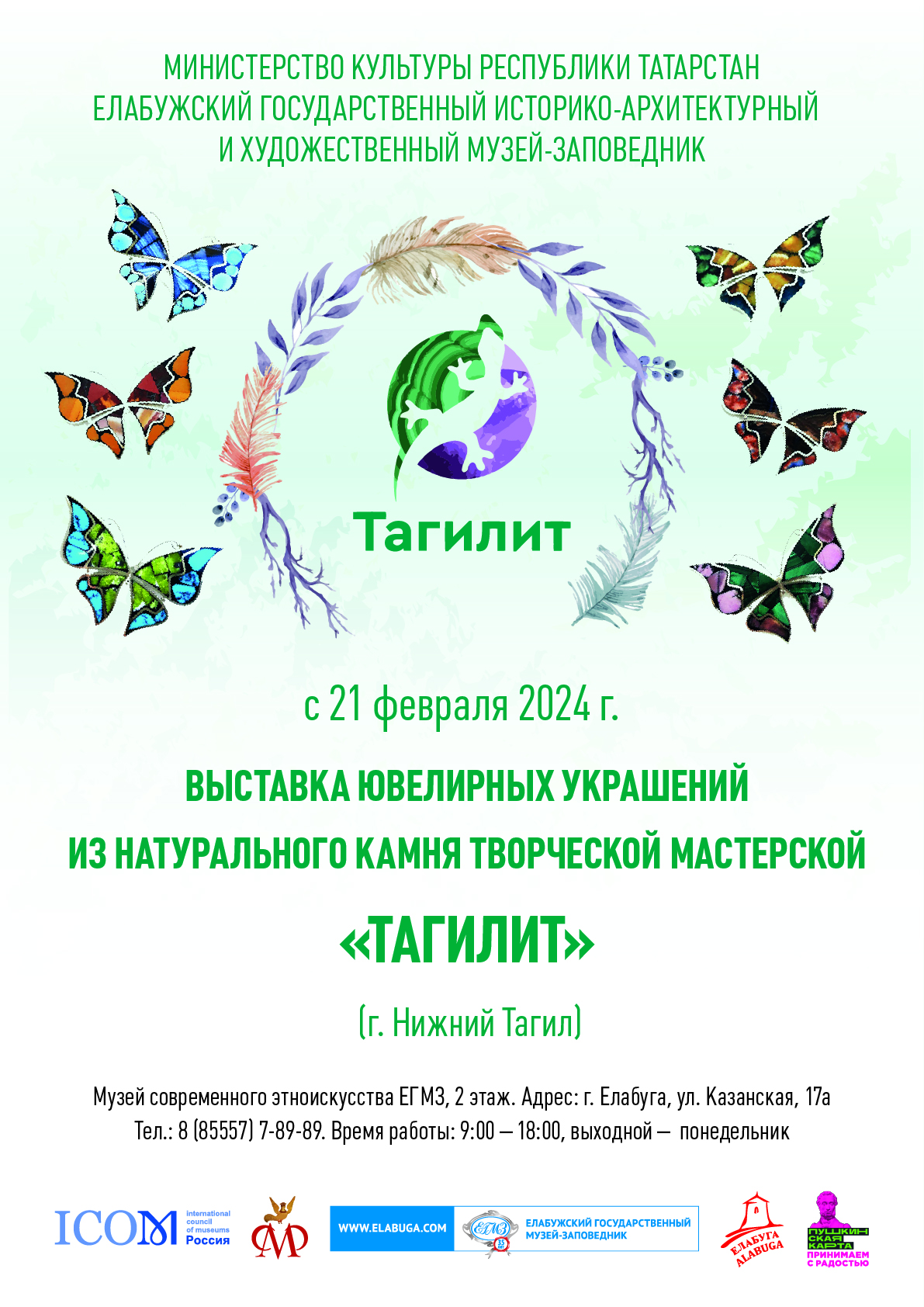 21 февраля в 15.00 в Музее современного этноискусства Елабужского государственного музея-заповедника состоится презентация выставки эксклюзивных ювелирных украшений из природного камня, представленных Творческой мастерской «Тагилит» (г. Нижний Тагил).