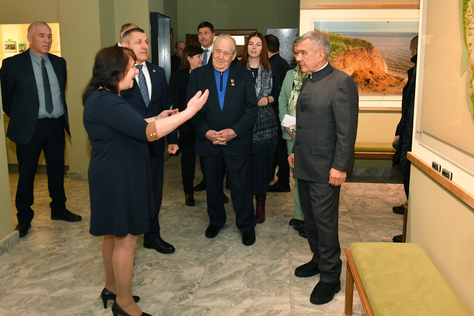 Делегацию в составе Раиса РТ Рустама Минниханова, Государственного Советника РТ Минтимера Шаймиева, помощника Раиса РТ Олеси Балтусовой, мэра Казани Ильсура Метшина встретила директор музея Фарида Муртазина.
