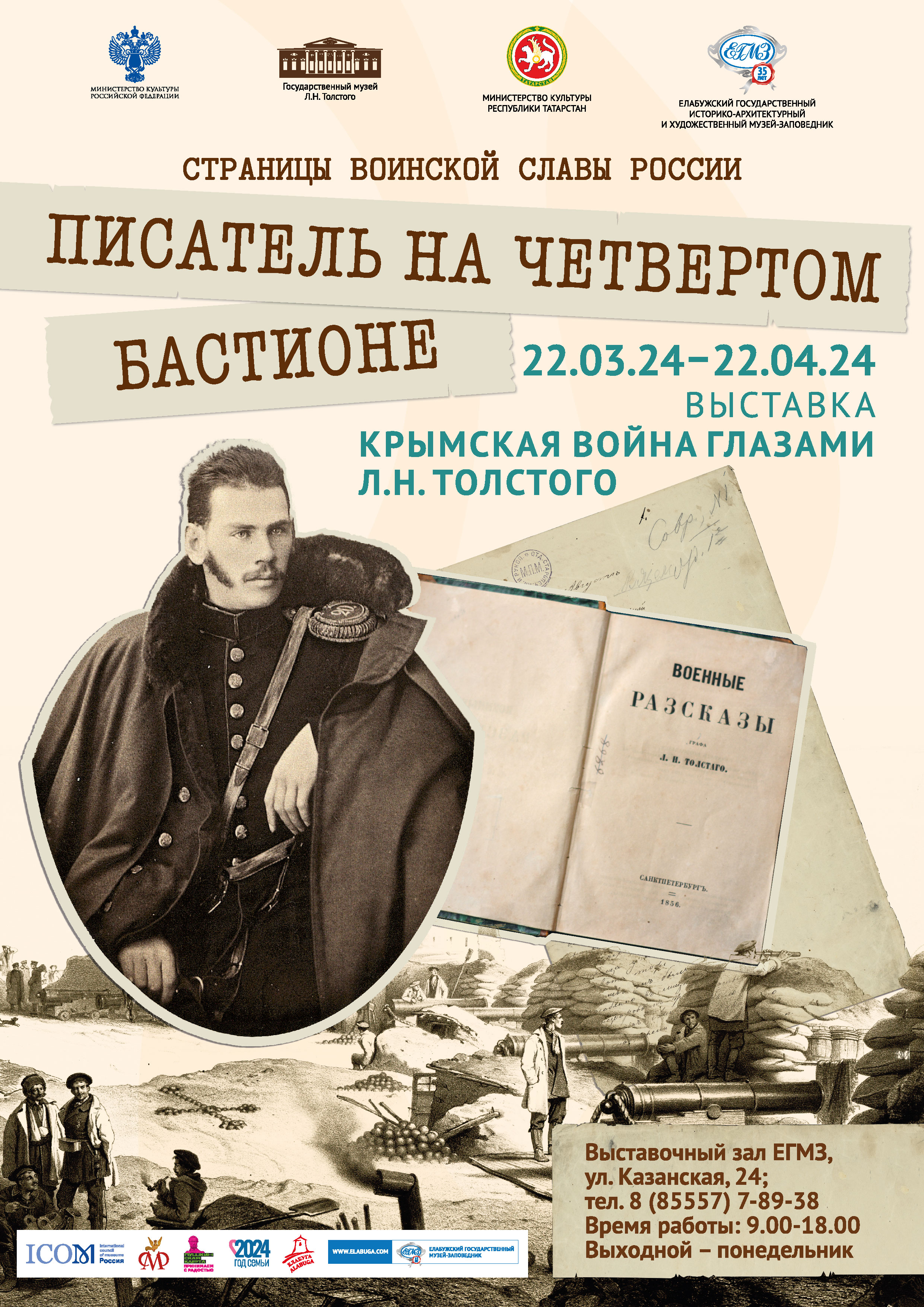22 марта в 15 часов в Выставочном зале состоится презентация выставки «Писатель на четвертом бастионе. Крымская война глазами Л.Н. Толстого» из собрания Федерального государственного бюджетного учреждения культуры «Государственный музей Л.Н. Толстого» (г. Москва).