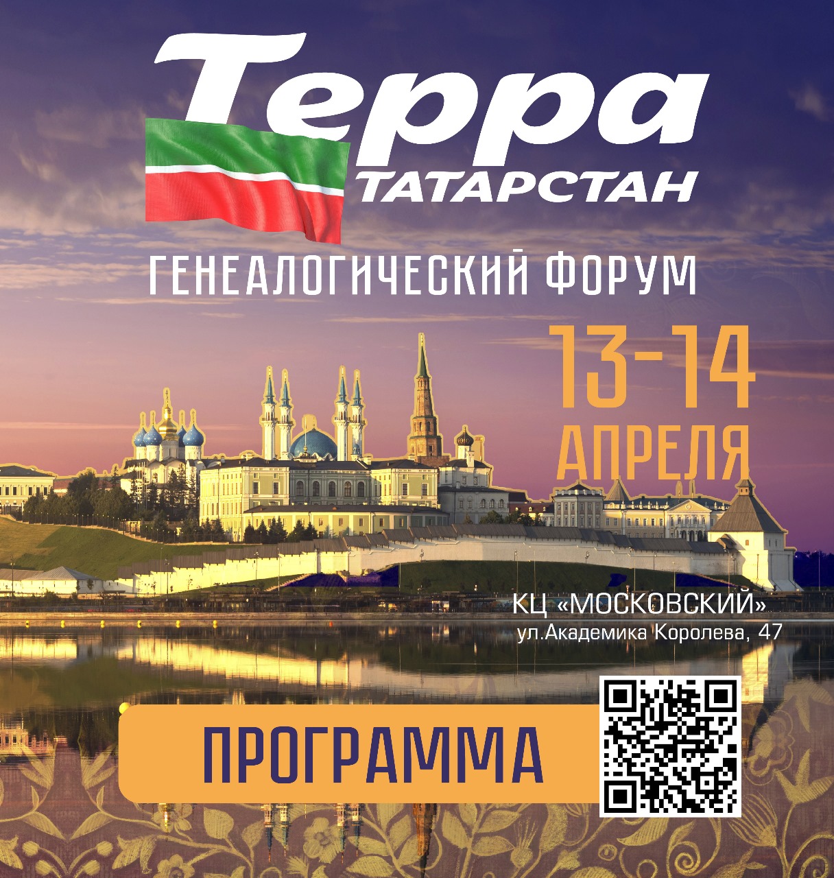13-14 апреля 2024 года в Культурном Центре «Московский» г. Казани Автономная Некоммерческая организация Центр реализации социальных проектов по сохранению семейных духовных ценностей и родовых традиций «САМОРОДОК» проводит II Генеалогический форум «Терра.Татарстан», форум по изучению семейной истории.