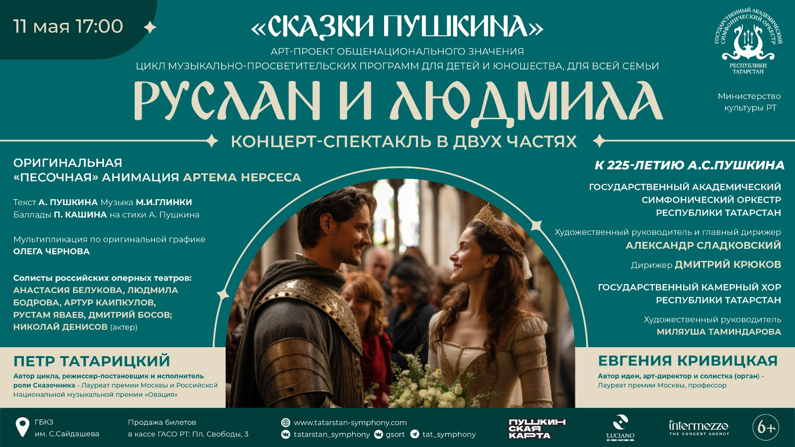 11 мая в 17:00 в ГБКЗ им. С. Сайдашева Государственный академический симфонический оркестр Республики Татарстан представит слушателям концерт-спектакль «Руслан и Людмила» в рамках цикла музыкально-просветительских программ для всей семьи арт-проекта общенационального значения «Сказки Пушкина».