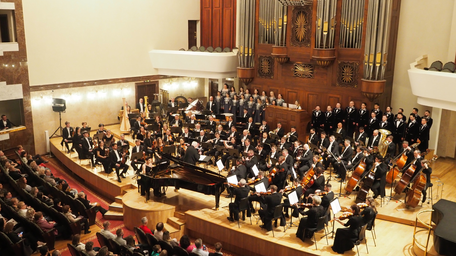В первом отделении концерта прозвучали Сюита из балета «Жар-птица» Игоря Стравинского и «Прометей» («Поэма огня») Александра Скрябина. Солистка – Татьяна Полянская (фортепиано). Партию органа исполнила Вероника Лобарева. Также вместе с оркестром выступил Государственный камерный хор Республики Татарстан (художественный руководитель – Миляуша Таминдарова).
