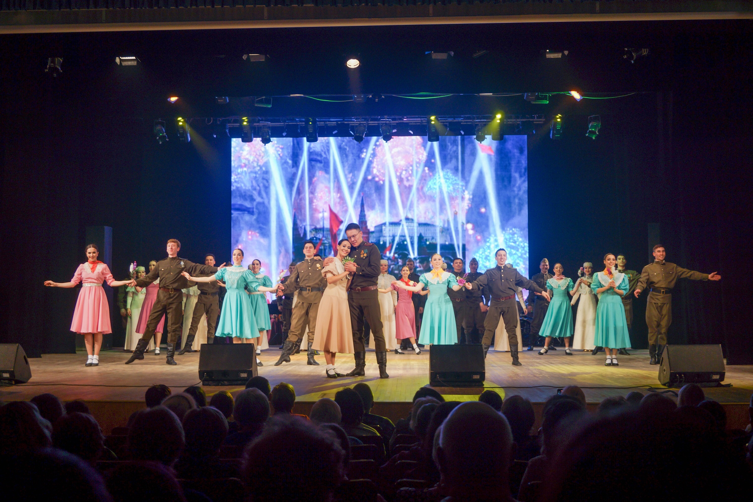 В первом отделении через вокально-хореографический спектакль «Была война…» зрители соприкоснулись с событиями тех лет. По сюжету влюбленных разлучила война. Им пришлось пройти немало испытаний в надежде, что фашизм будет повержен и они обязательно встретятся.