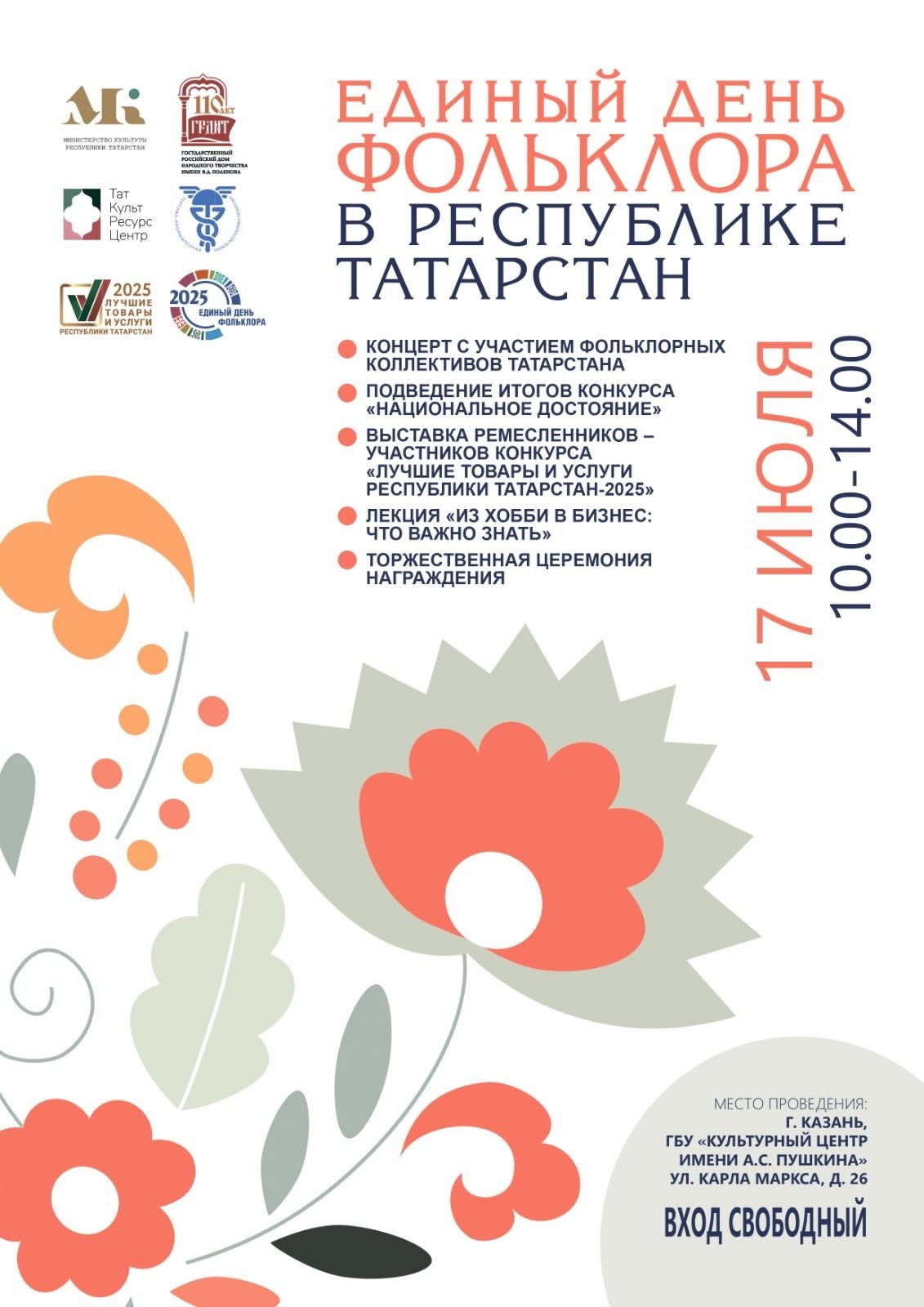 17 июля в Республики Татарстан отмечается Единый день фольклора - праздник, посвященный народной культуре, традициям и творчеству.