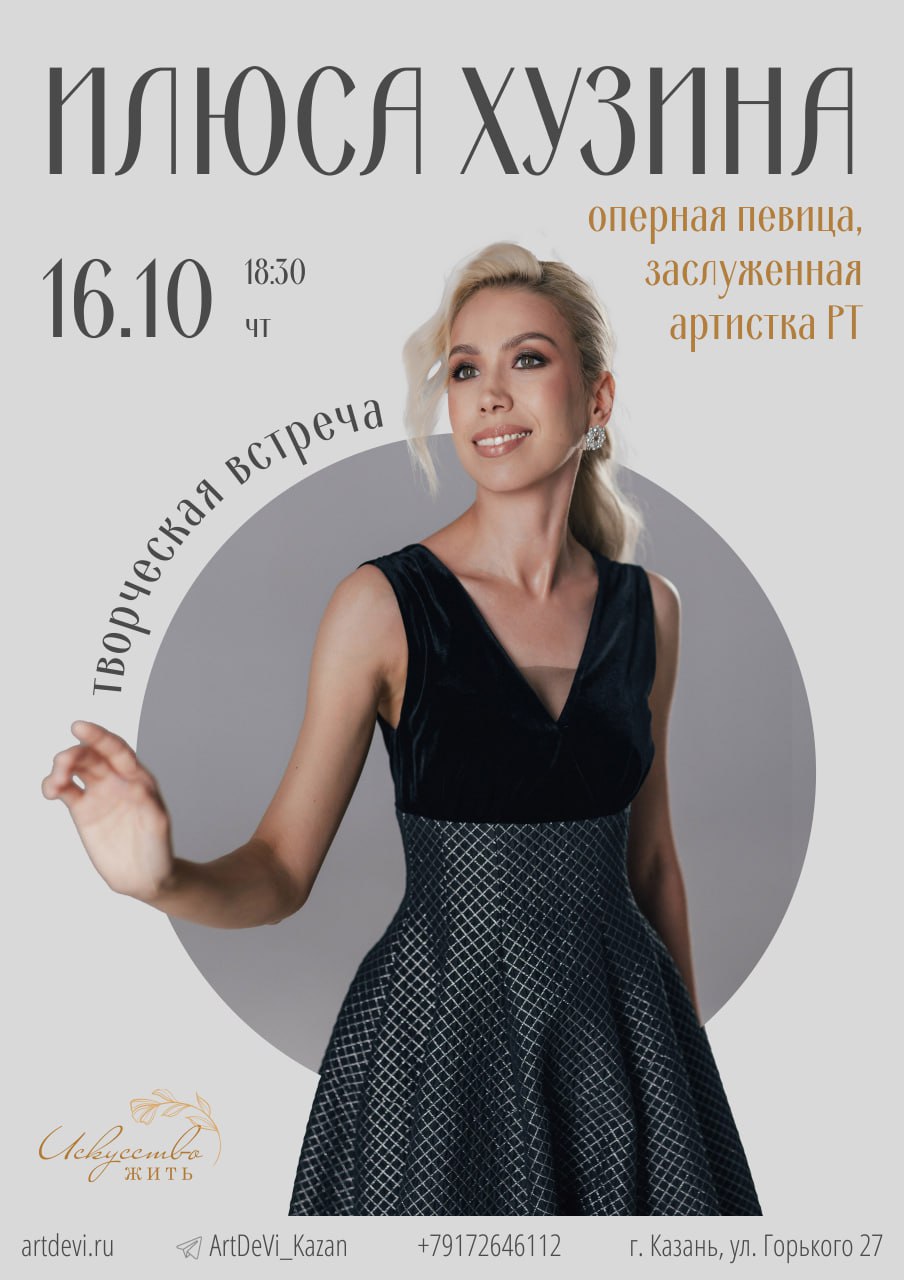 На творческой встрече Илюса Хузина расскажет о своем становлении, творческом пути, а также предстоящем сольном концерте, который состоится 27 октября на легендарной сцене театра Камала. На встрече в "Искусство жить" состоится розыгрыш билетов на сольный концерт певицы.