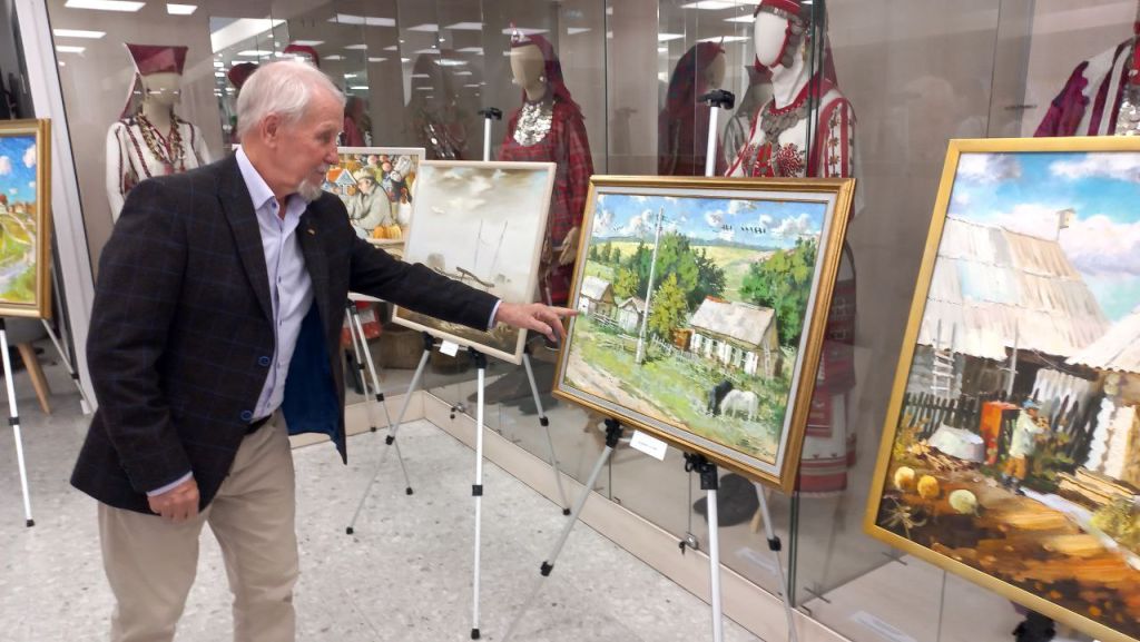 Среди работ, экспонированных на выставке, много картин посвящённых родному селу художника. Владимир Акимов родился в чувашской деревне Ендурайкино Самарской области.