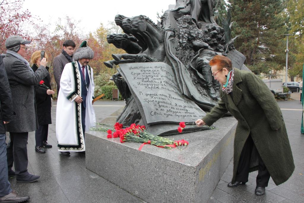 В завершении торжественного митинга участники возложили цветы к памятнику Мустая Карима.