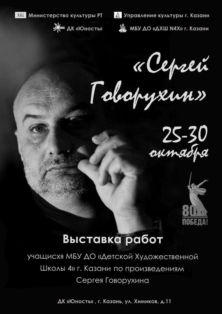 25-30 октября во Дворце культуры «Юность» пройдет выставка работ учащихся МБУ ДО «Детская художественная школа №4» г. Казани по произведениям Сергея Говорухина, знаменитого земляка г. Казани, лауреата российских и международных кинопремий.