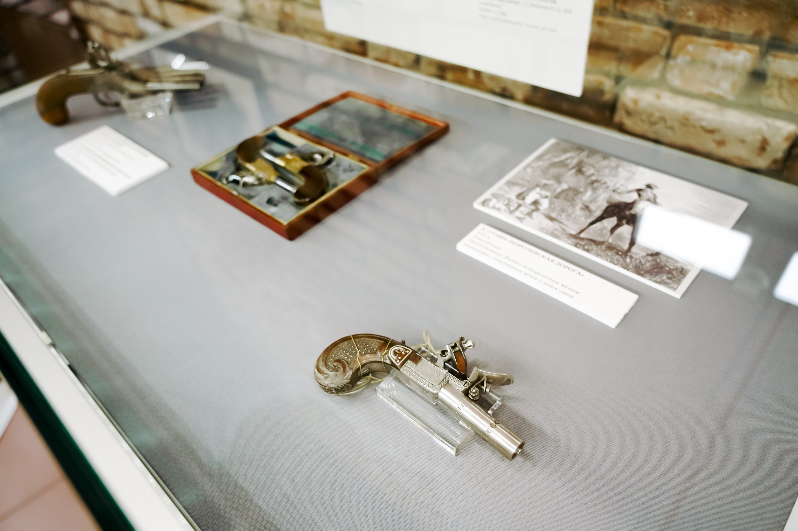Среди экспонатов выставки можно будет увидеть необычные конструкторские решения: револьвер-кастет с откидным штыком, двуствольный пистолет-кинжал и стреляющую авторучку.