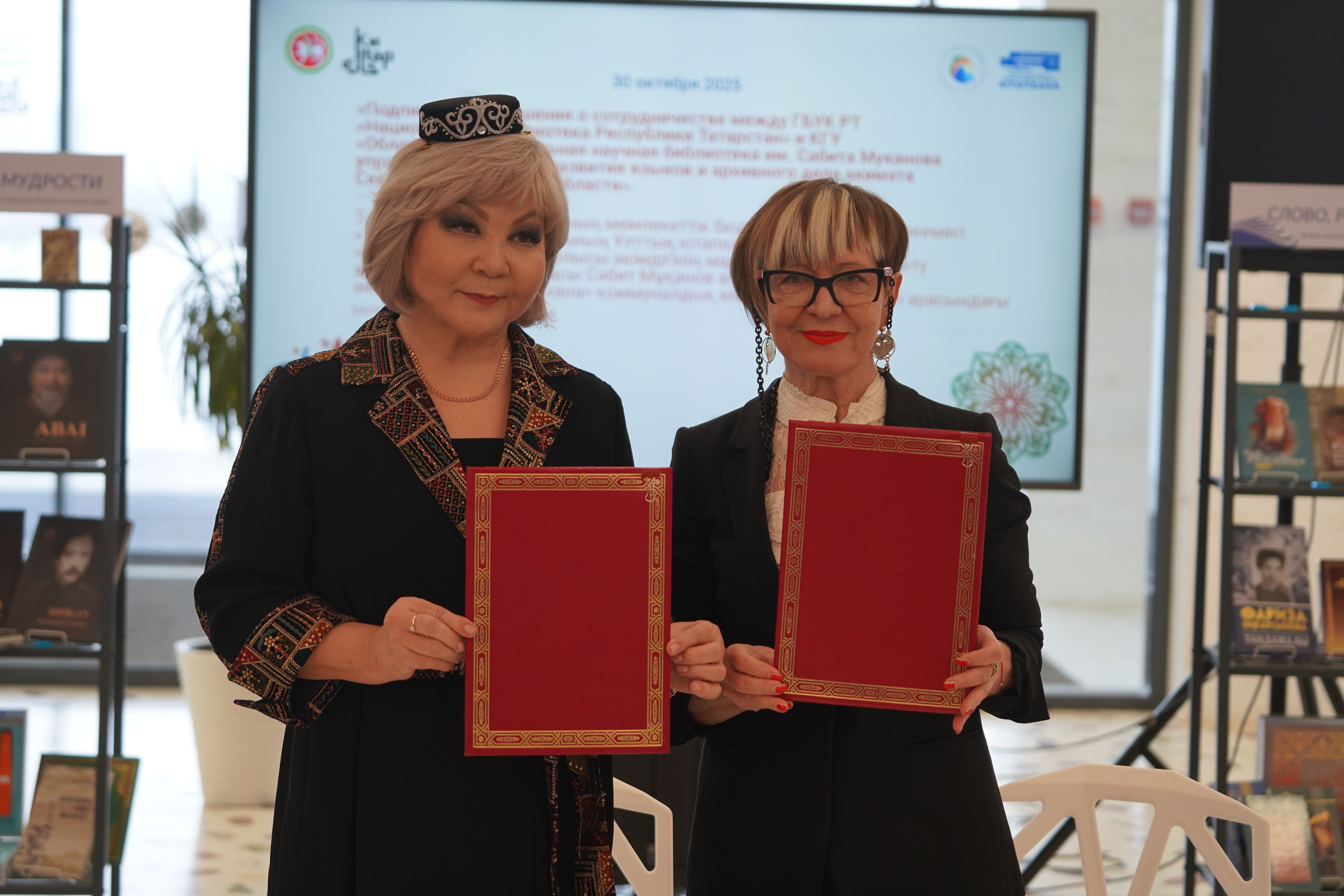 На открытии выставки «Литературный небосклон Казахстана» состоялось подписание соглашения о сотрудничестве между ГБУК РТ "Национальная библиотека Республики Татарстан" и КГУ "Областная универсальная научная библиотека им. Сабита Муканова управления культуры, развития языков и архивного дела акимата Северо-Казахстанской области".
