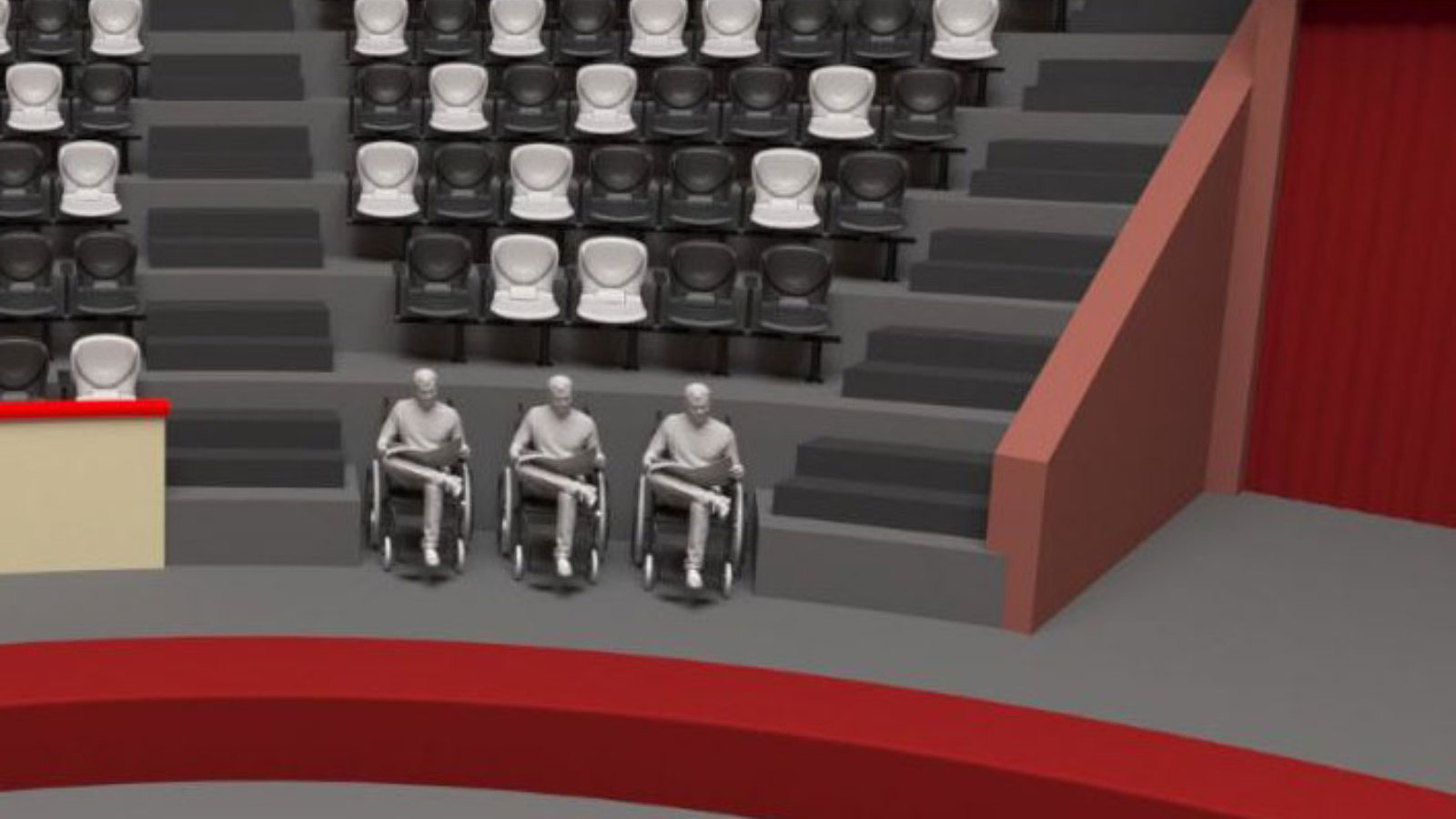 Раньше зрители в инвалидных колясках располагались в боковых проходах зрительного зала либо возле лестниц – отдельных выделенных мест для них не было. Во время представления приходилось постоянно перемещать коляски с места на место, чтобы предоставить беспрепятственный проход артистам, обеспечить свободную работу технического персонала и организовать безопасное пространство для самих инвалидов, особенно во время номеров с хищными животными. Теперь эта проблема решена – для зрителей в инвалидных колясках есть удобные места, в которых они могут смотреть представление от начала до конца.