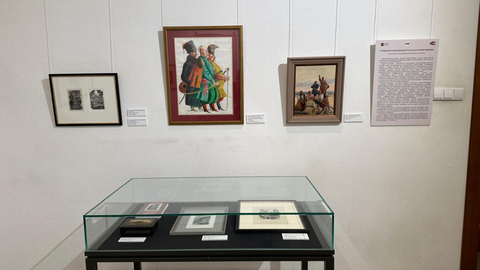 Выставка позволяет познакомиться с «гоголевской энциклопедией русской жизни» через произведения отечественных художников. В экспозиции представлено 141 предметов живописи, графики, декоративно-прикладного искусства.