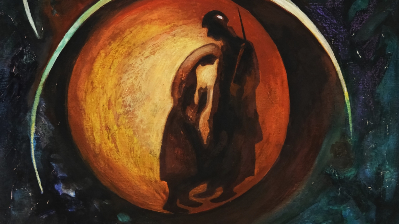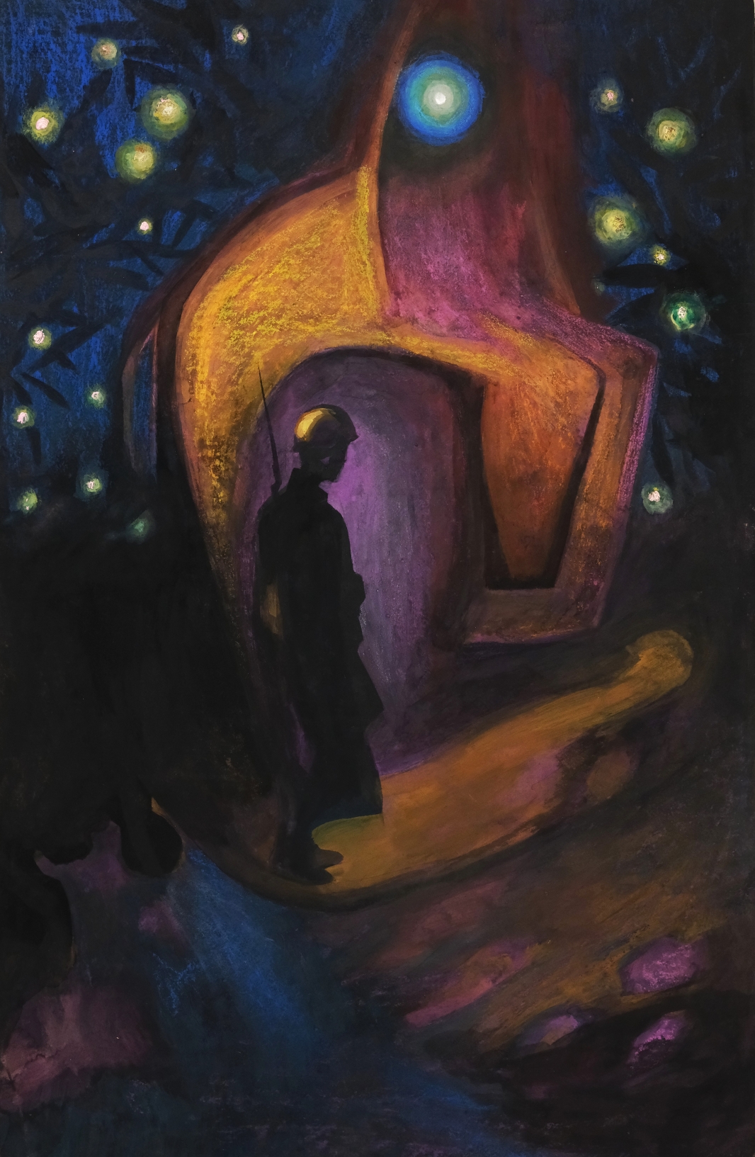 Центральной темой творчества Аршинова стала война – личная и историческая. Родители художника прошли через испытания Великой Отечественной войны, и эта память стала нравственным фундаментом его искусства. Кульминацией многолетних поисков стала графическая серия «Бессмертная песня» (2001-2006), созданная по мотивам «Моабитской тетради» Мусы Джалиля. Лаконичные формы, резкие контрасты света и тени, напряжённая композиция превращают поэтический текст в мощное визуальное свидетельство мужества и человеческого достоинства. За эту серию Виктор Аршинов был удостоен Государственной премии Республики Татарстан им. Габдуллы Тукая. В экспозиции также представлена живописная работа «Памяти Мусы Джалиля» (2019) – монументальное полотно-размышление о бессмертии поэтического слова и силе духа, неподвластной смерти.