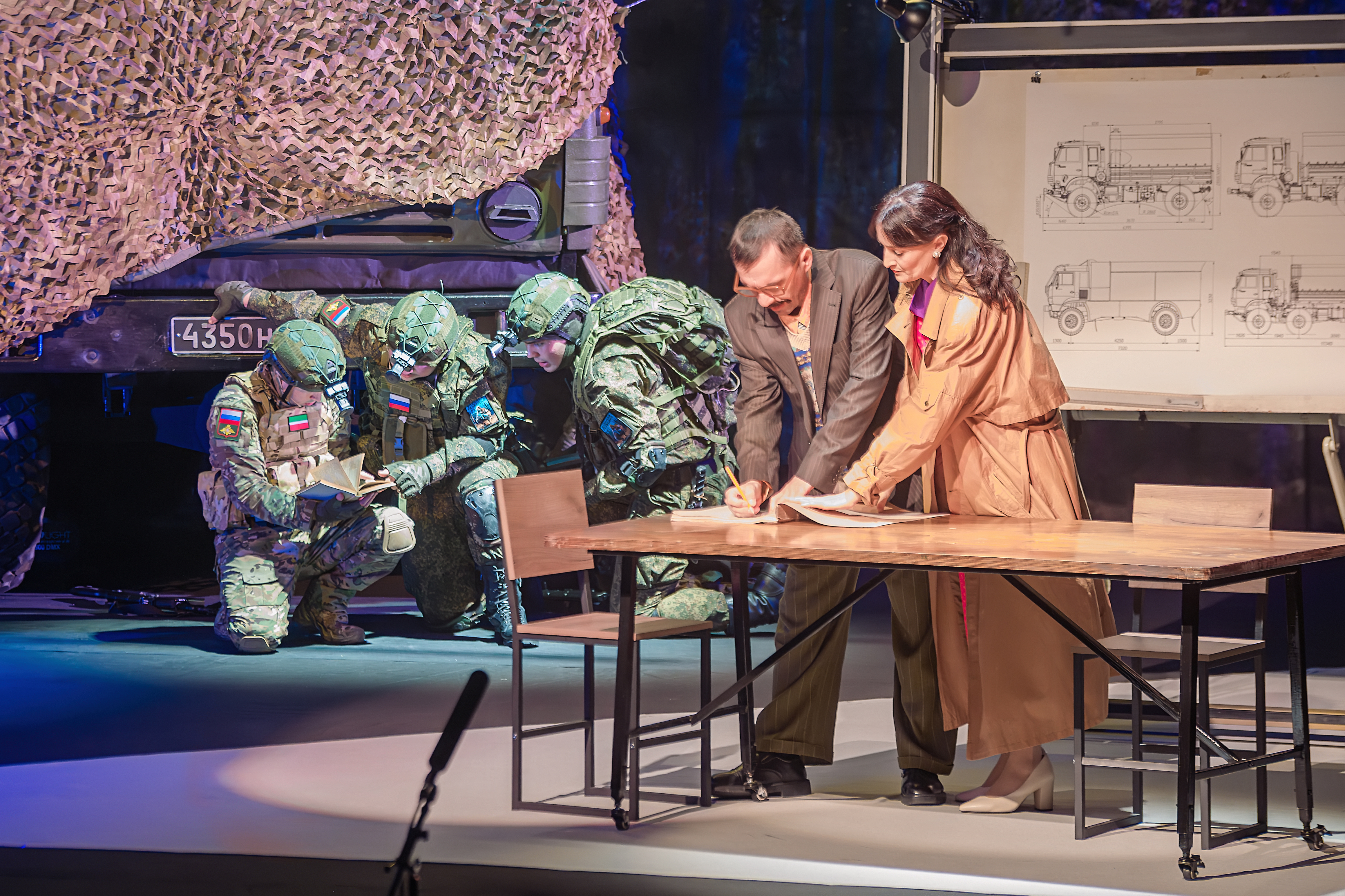 «Мы гордимся тем, что живем в Набережных Челнах – городе, который строили настоящие патриоты, фанаты своего дела. 50 лет назад их усилиями родился КАМАЗ. Сегодня конструкторы создают новые боевые машины, а наши бойцы на передовой управляют ими, приближая победу. Наш спектакль – о преемственности поколений, о людях и машинах, которые стали щитом страны. Это история нашей общей гордости» – прокомментировал выход премьеры художественный руководитель Татарского драмтеатра Олег Киньзягулов.