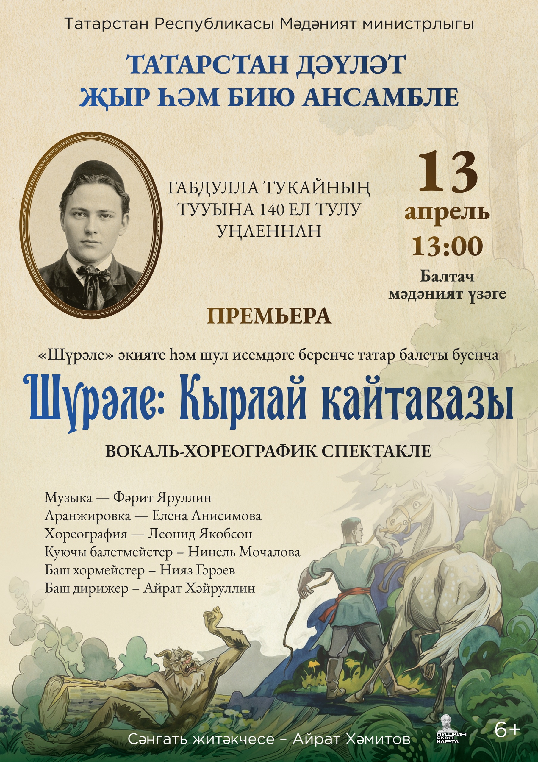 И нам показалось символичным сыграть эту премьеру не в Казани, а в Балтасях. Так сказка вернется туда, где родилась — в Заказанье. Туда, где земля помнит маму великого поэта. Мы приглашаем зрителя не просто посмотреть спектакль, а отправиться в путешествие к истокам — в сердце татарской культуры», — рассказал художественный руководитель ансамбля, заслуженный артист РФ, народный артист РТ Айрат Хаметов.