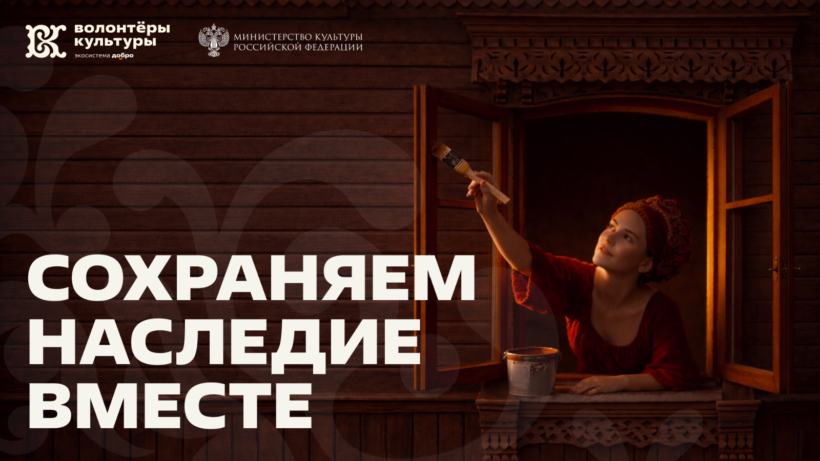 Всероссийское общественное движение «Волонтеры культуры» запускает программу «Сохраняем наследие вместе». Программа реализуется при поддержке Министерства культуры России, Всероссийского общества охраны памятников истории и культуры, Государственного Российского Дома народного творчества имени В.Д. Поленова и Ассоциации Добро.рф.