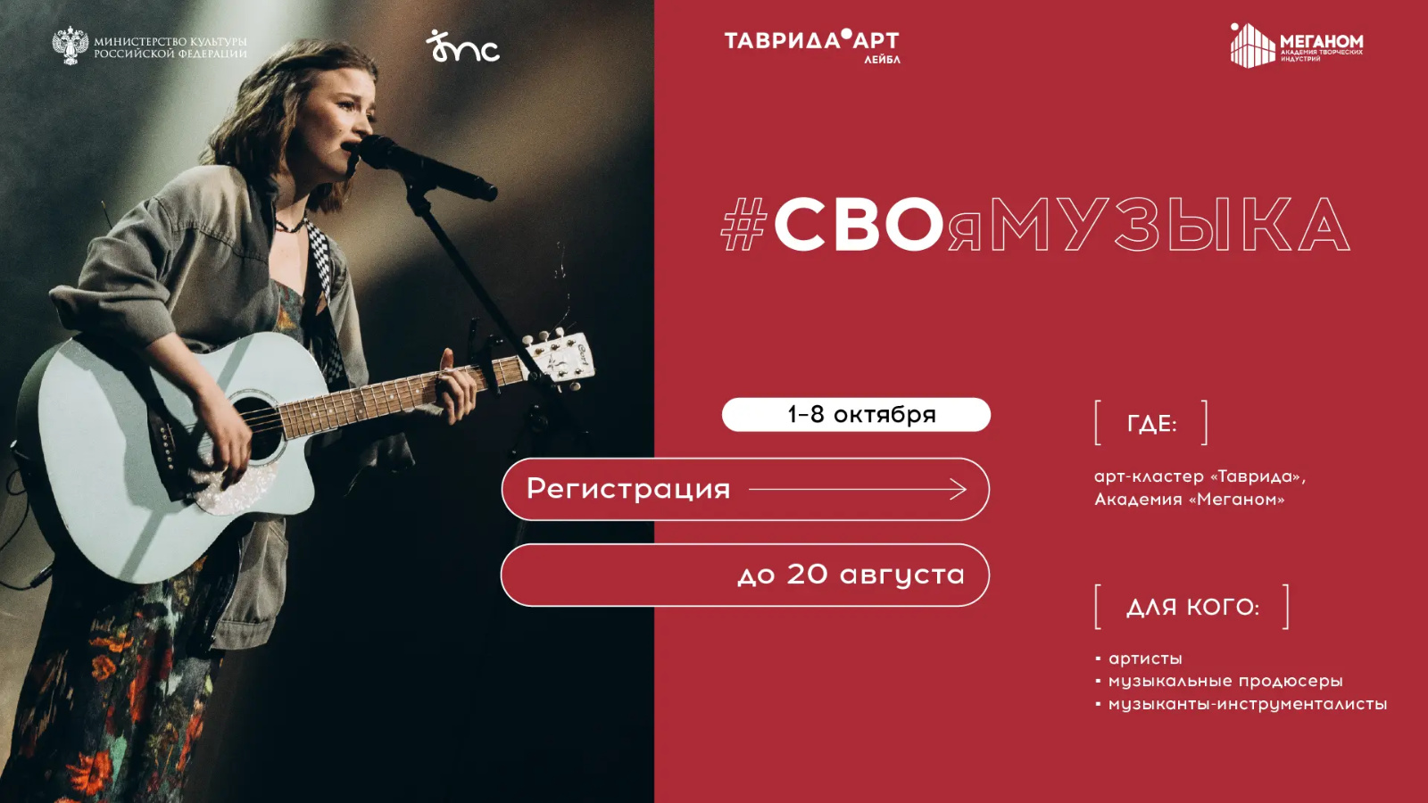 С 1 по 8 октября в Крыму в Академии творческих индустрий «Меганом» (проект «Таврида.АРТ») при поддержке Министерства культуры Российской Федерации пройдет программа «#СВОяМУЗЫКА». Она направлена на создание музыкального контента, основанного на личных историях участников и ветеранов специальной военной операции, а также членов их семей. Итогом работы станет сборник патриотической музыки для учреждений культуры, а также выпуск отдельных треков на музыкальном лейбле «Таврида.АРТ» и лейблах партнеров.