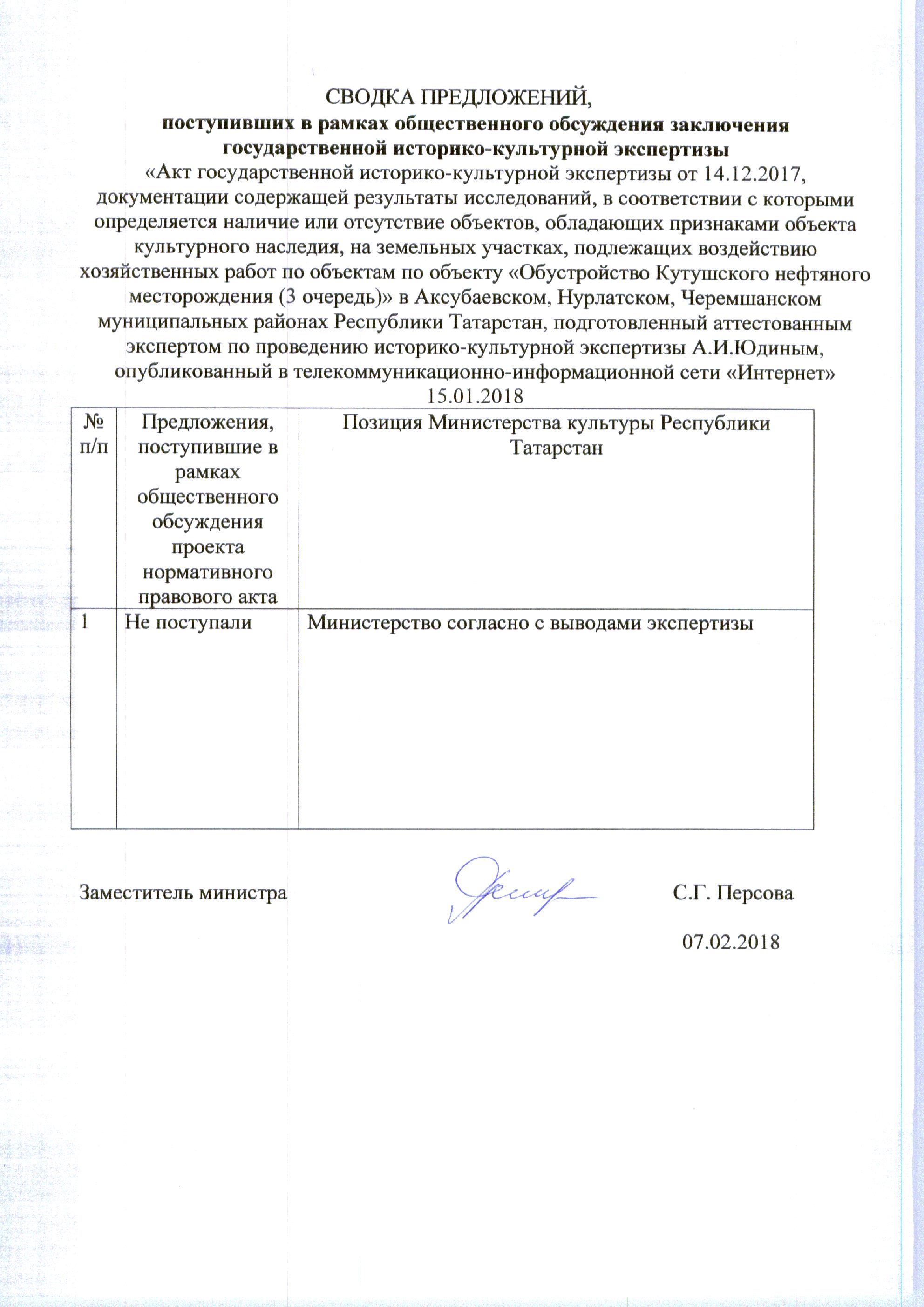 Акт государственной историко-культурной экспертизы документации, содержащей результаты и исследований, в соответствии с которыми определяется наличие или отсутствие объектов культурного наследия, включенных в реестр, выявленных объектов культурного наследия либо объектов, обладающих признаками объекта культурного наследия, на земельных участках .подлежащих воздействию земляных, строительных, мелиоративных, хозяйственных работ, работ по использованию лесов и иных работ по проекту «Обустройство Кутушского нефтяного месторождения (3 очередь)» в Аксубаевском, Нурлатском, Черемшанском муниципальных районах Республики Татарстан.