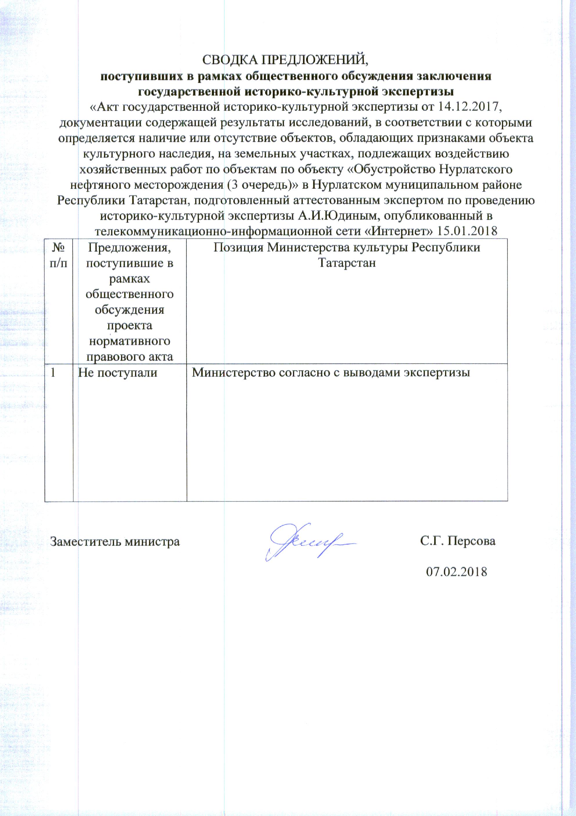 Акт государственной историко-культурной экспертизы документации, содержащей результаты и исследований, в соответствии с которыми определяется наличие или отсутствие объектов культурного наследия, включенных в реестр, выявленных объектов культурного наследия либо объектов, обладающих признаками объекта культурного наследия, на земельных участках .подлежащих воздействию земляных, строительных, мелиоративных, хозяйственных работ, работ по использованию лесов и иных работ по проекту «Обустройство дополнительных скважин Ерсубайкинского нефтяного месторождения» в Альметьевском муниципальном районе Республики Татарстан.
