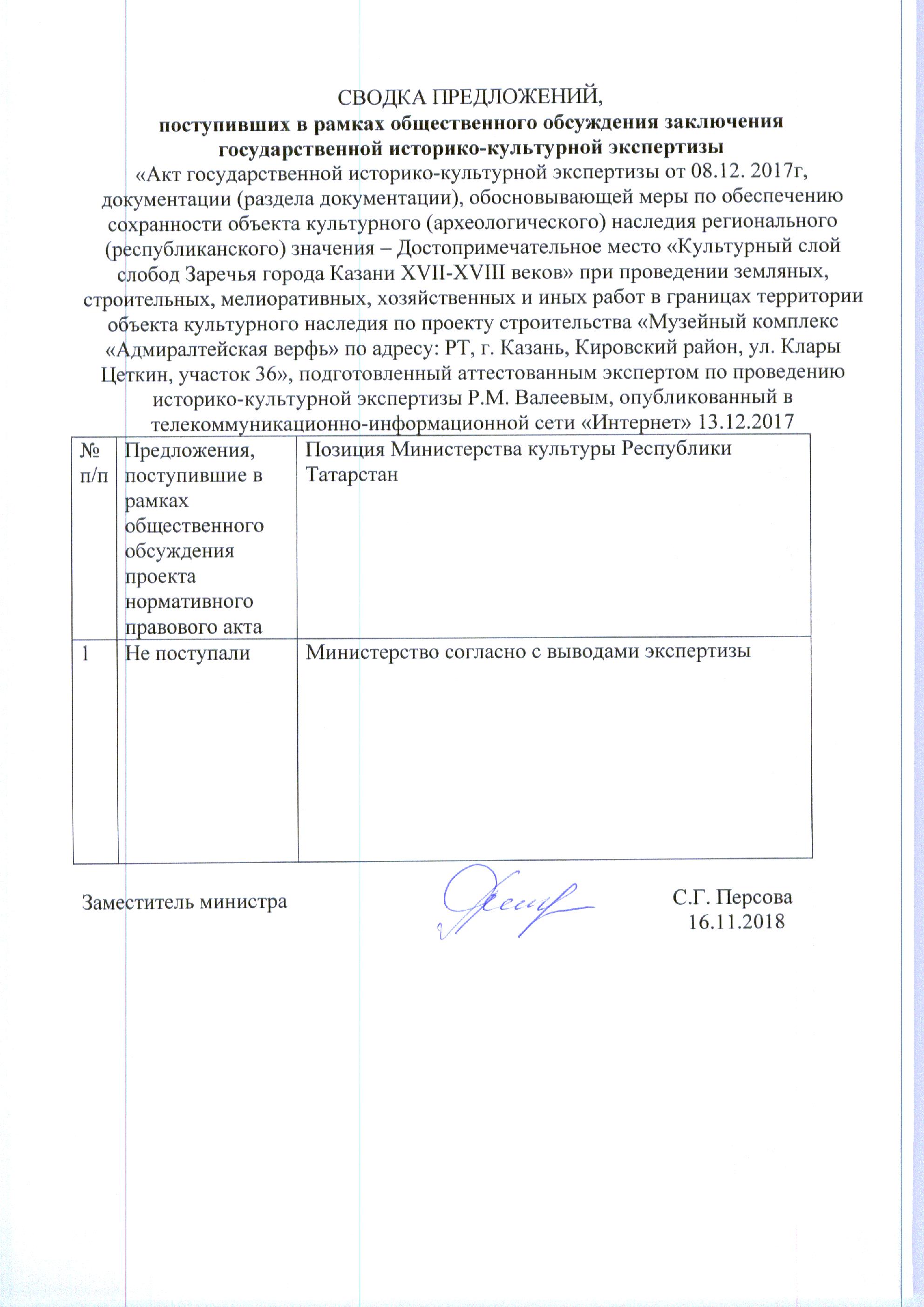Акт государственной историко-культурной экспертизы документации, обосновывающей меры по обеспечению сохранности объекта культурного (археологического) наследия регионального (республиканского) значения – Достопримечательное место «Культурный слой слобод Заречья города Казани XVII-XVIII веков» при проведении земляных, строительных, мелиоративных, хозяйственных и иных работ в границах территории объекта культурного наследия по проекту строительства «Музейный комплекс «Адмиралтейская верфь»» по адресу: РТ, г. Казань, Кировский район, ул. Клары Цеткин, участок 36.